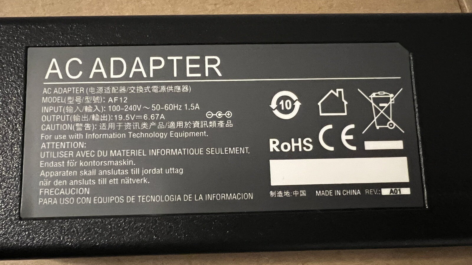 Output: 19.5V 6.7A 130W Max (Replacing genuine Dell 130W adapter)