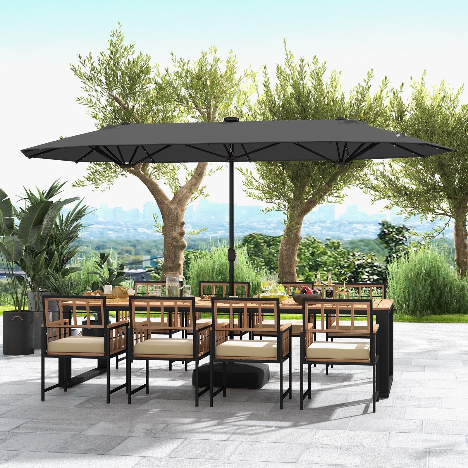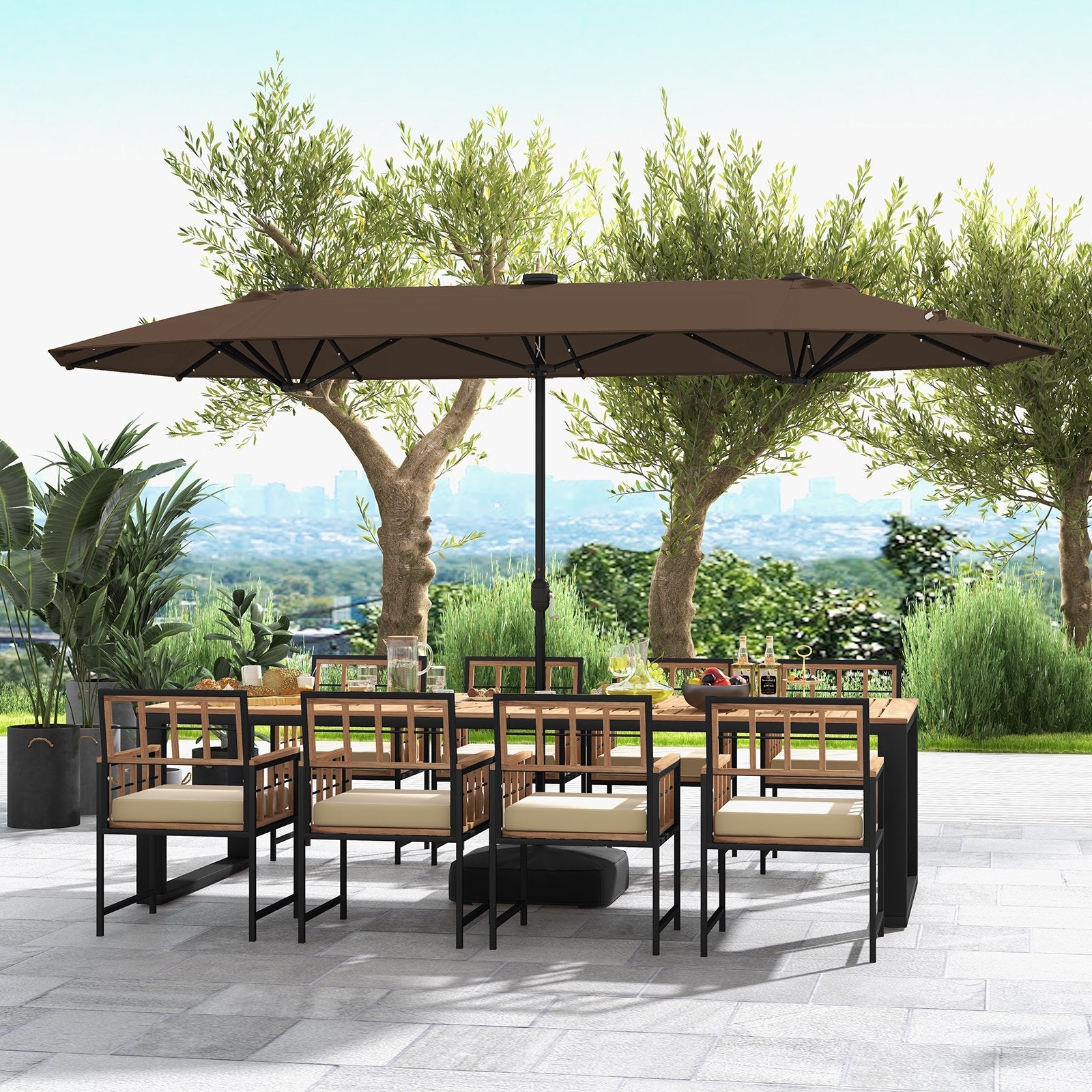 13FT Double-sided Patio Umbrella with Solar Lights for Garden Pool Backyard-Beige