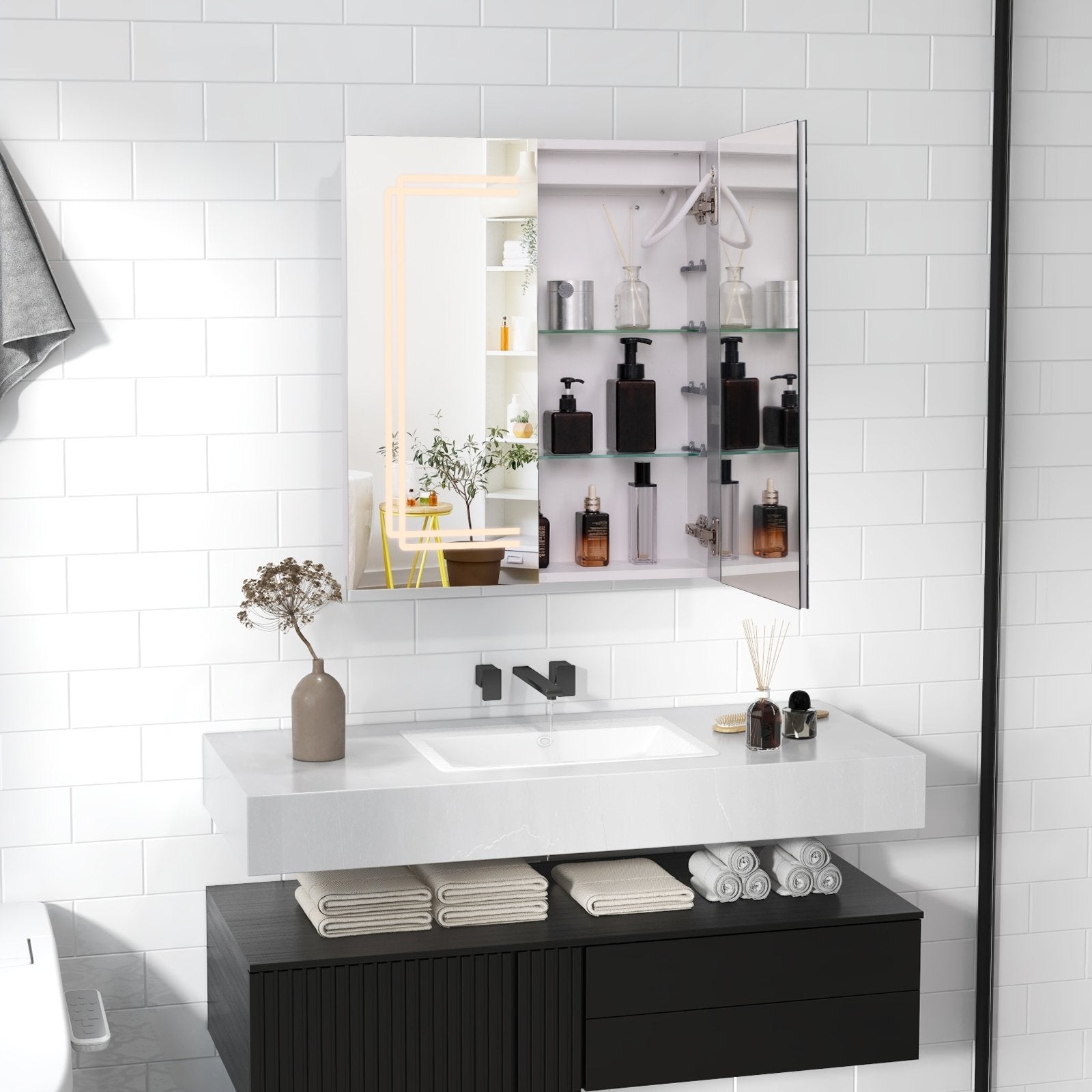● Double-sided HD mirrors offer clear reflection for daily routines● 5%-100% stepless dimming and 3 color temperature for customizable lighting... Read more