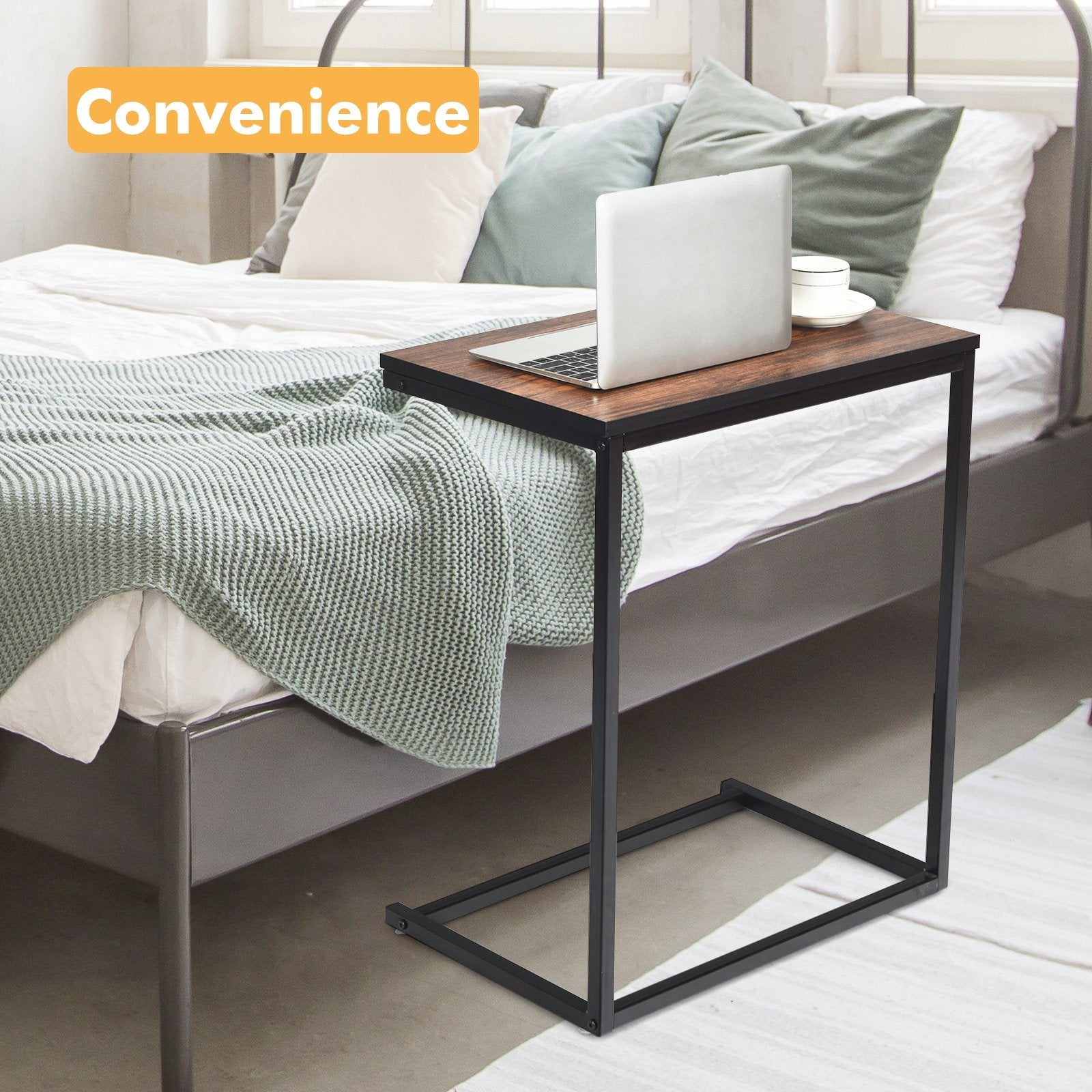 26 Inch Beside Sofa Laptop Holder End Stand Desk-Brown