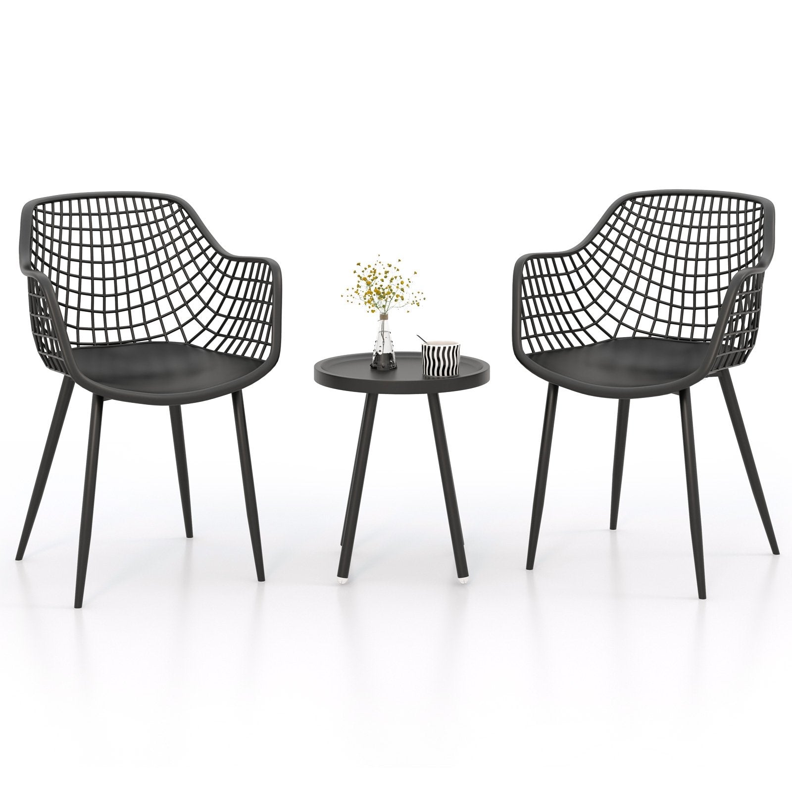 3 Piece Patio Chair Set with PP Seat and Tabletop for Porch-Black