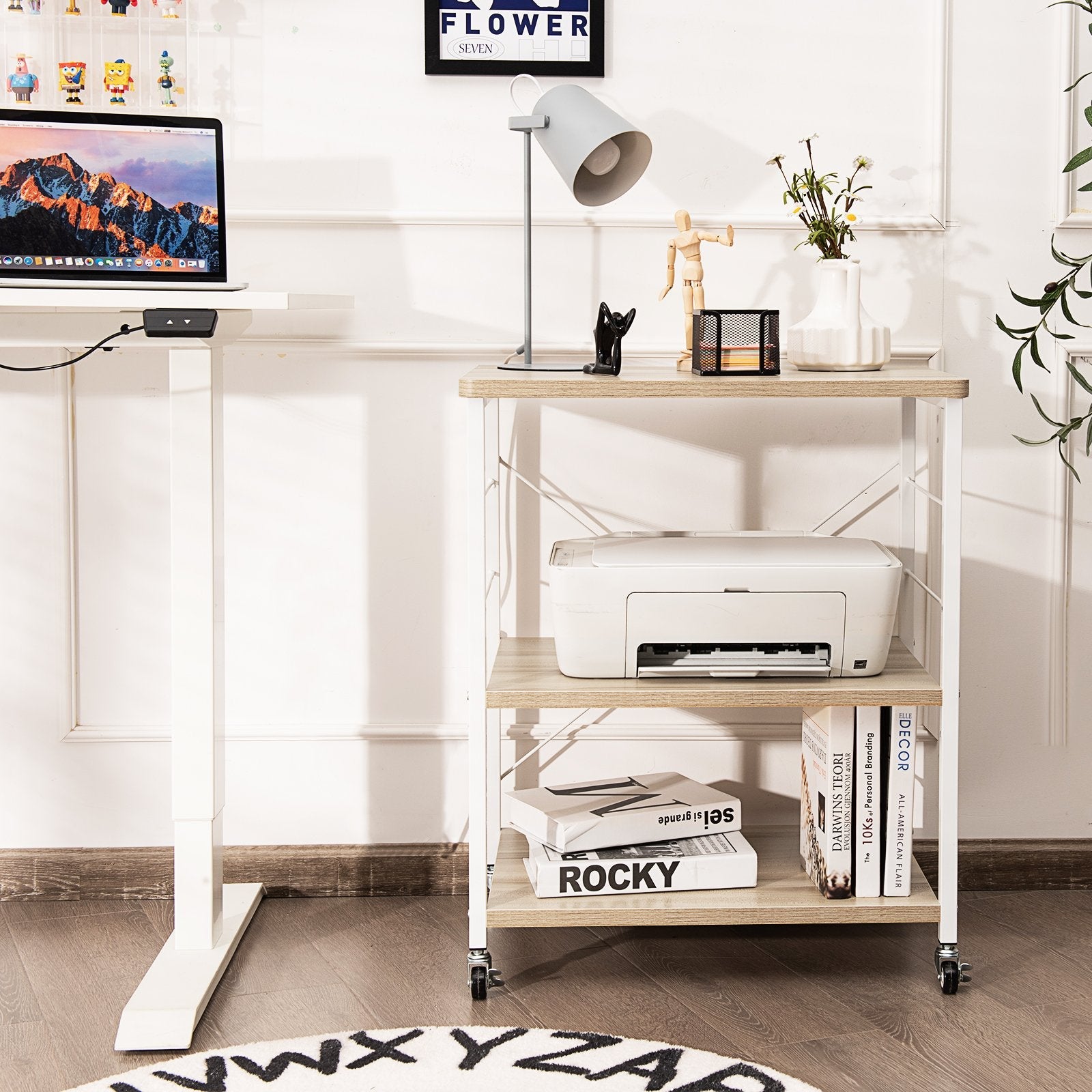 3-Tier Kitchen Baker's Rack Microwave Oven Storage Cart with Hooks-Charcoal Brown