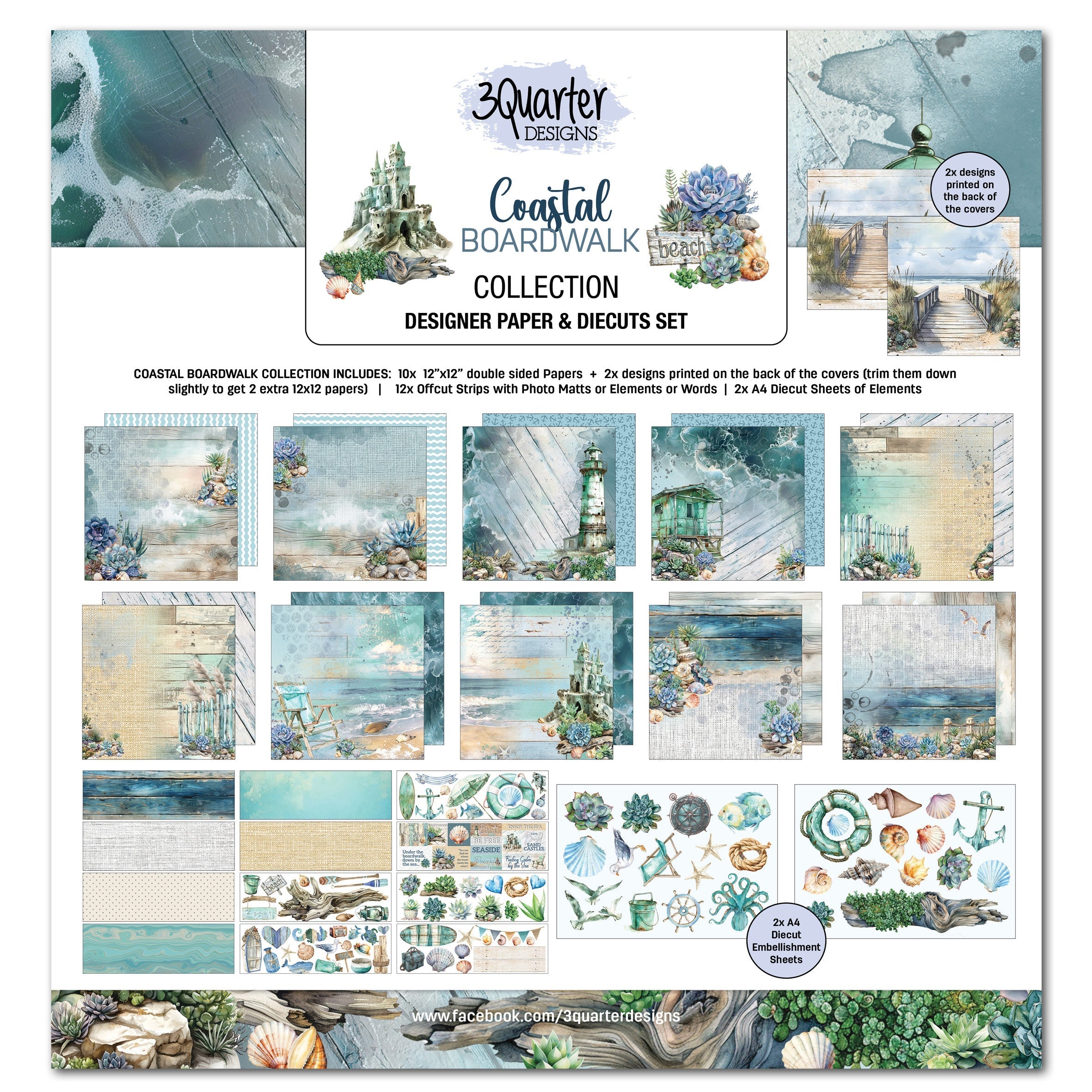3Quarter Designs Coastal Boardwalk 12x12 Design Paper & Diecuts Set