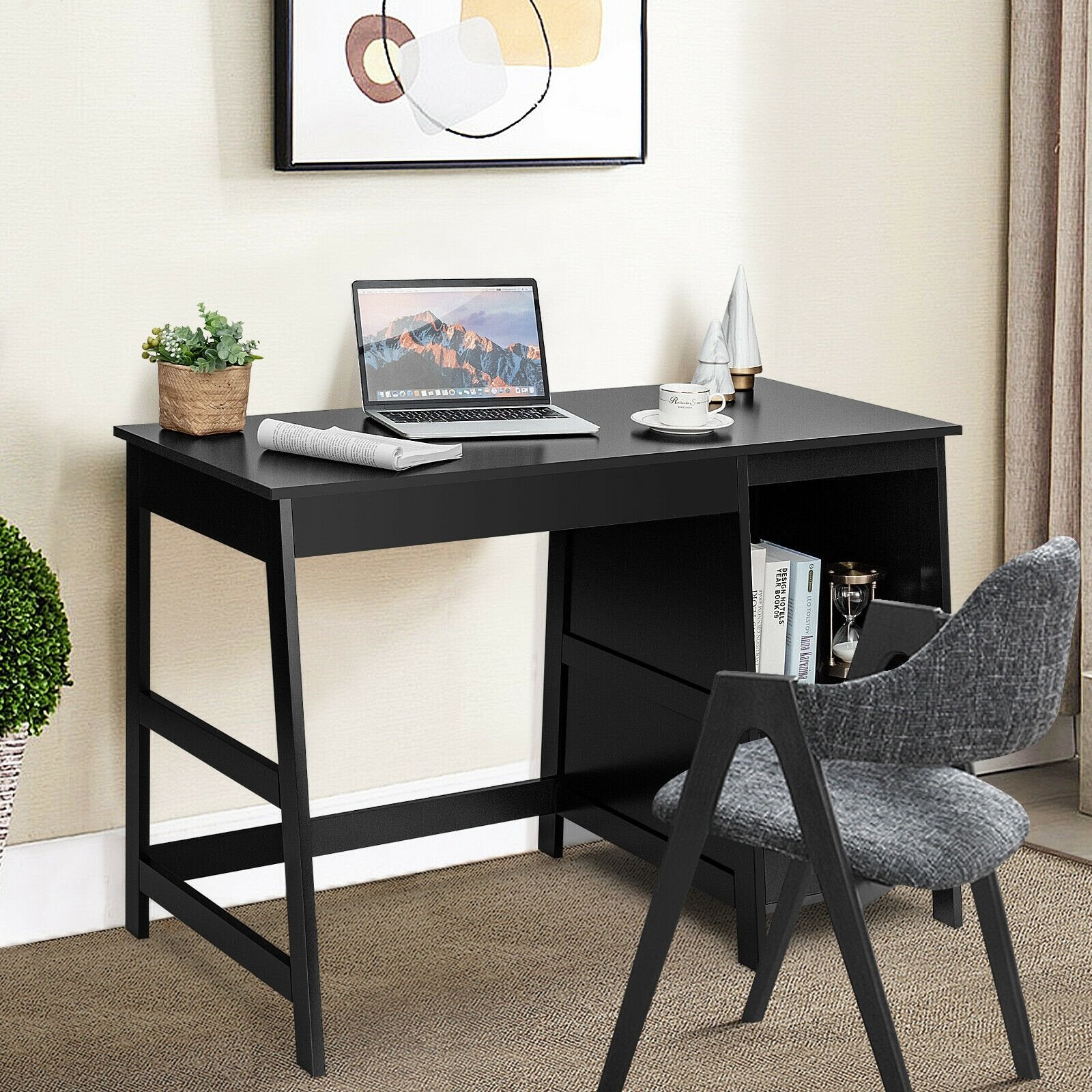 47.5 Inch Modern Home Computer Desk with 2 Storage Drawers-Black
