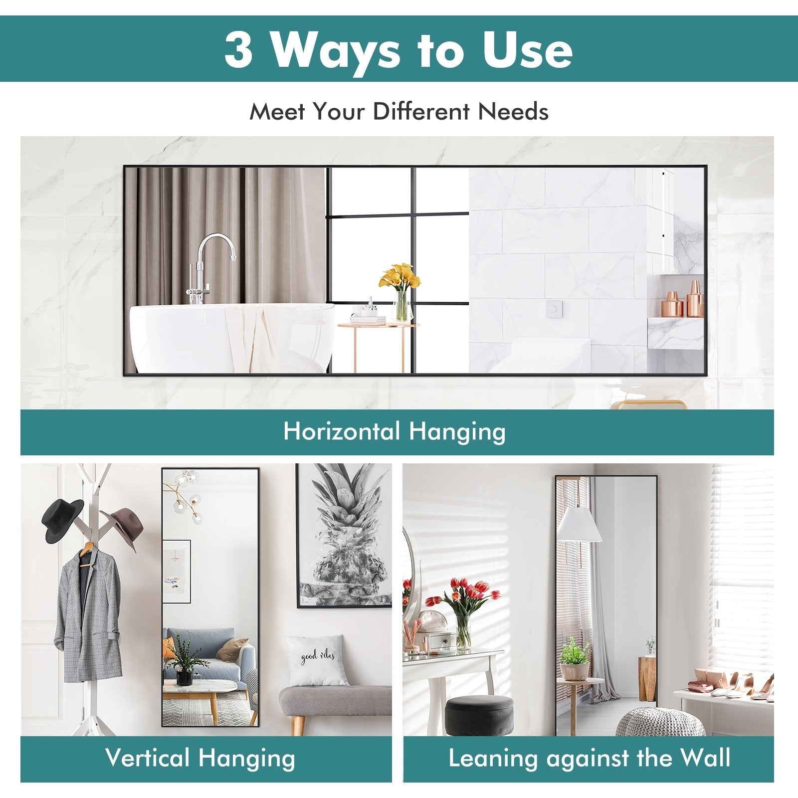 59 Inch Full Length Mirror Large Rectangle Bedroom Mirror-Black