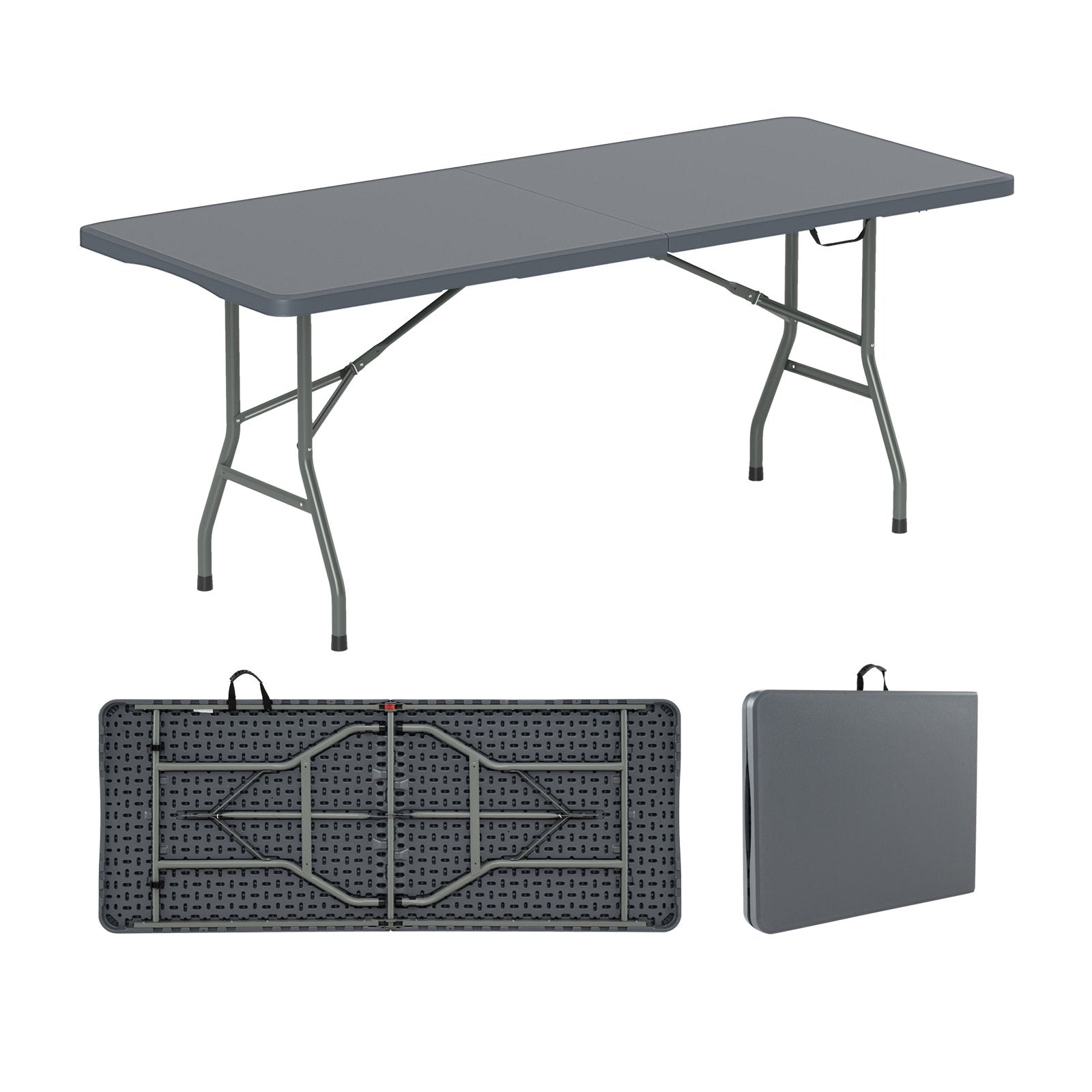 6 ft Portable Folding Table 350 LBS Fold-in-Half Table with HDPE Tabletop-Black