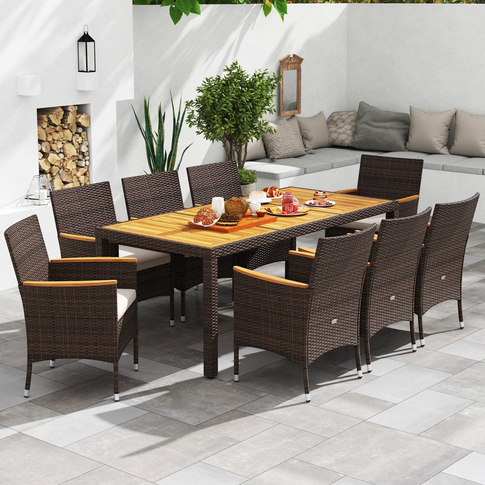 9 Piece Outdoor Dining Set with Acacia Wood Table Top-Beige