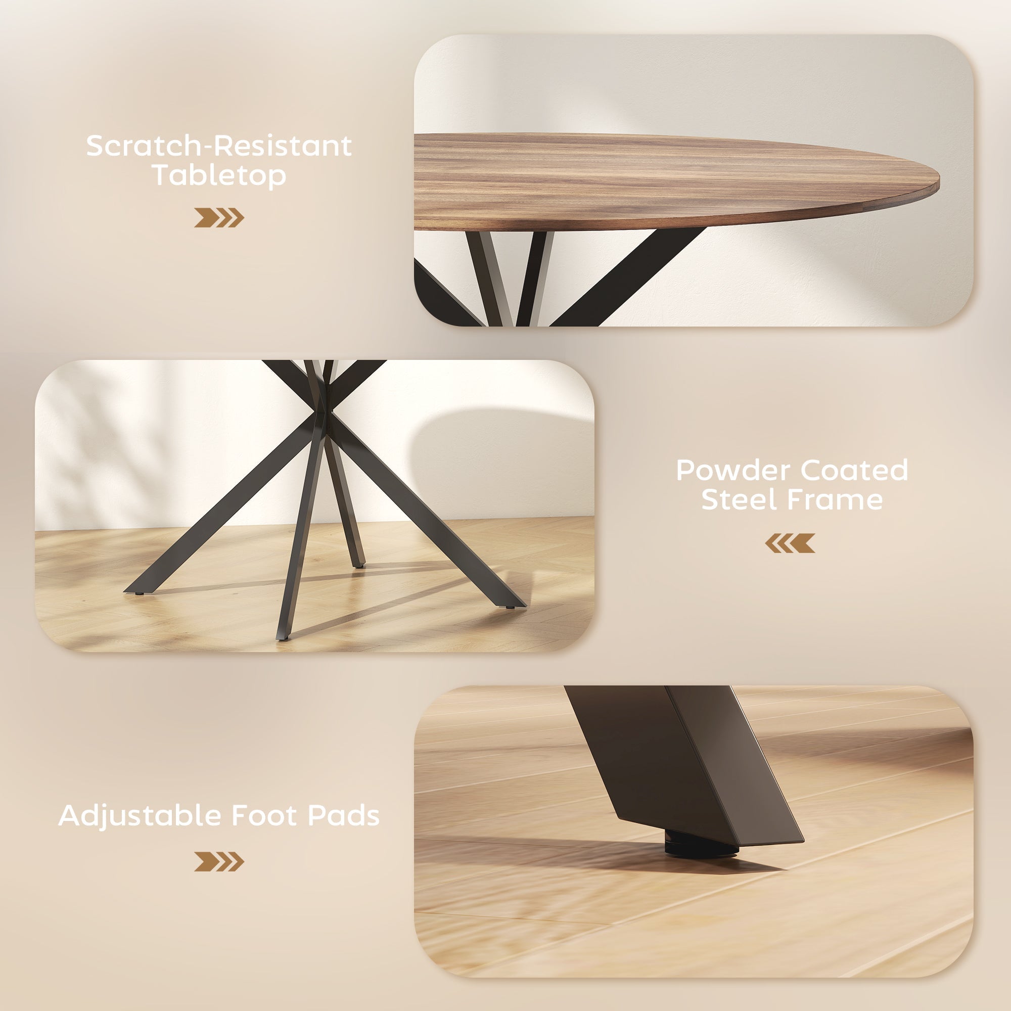 Bring warmth and personality to your space with this round dining table that makes every meal feel like an occasion. The natural wood-look top and bold X-shaped legs strike the balance of cozy and cool. Comfortably seating four, the kitchen table is great for everything from lazy brunches to late-night chats. It stays steady, even on uneven floors with adjustable foot pads—so whether you're dining, working, or playing, it's always up for it.