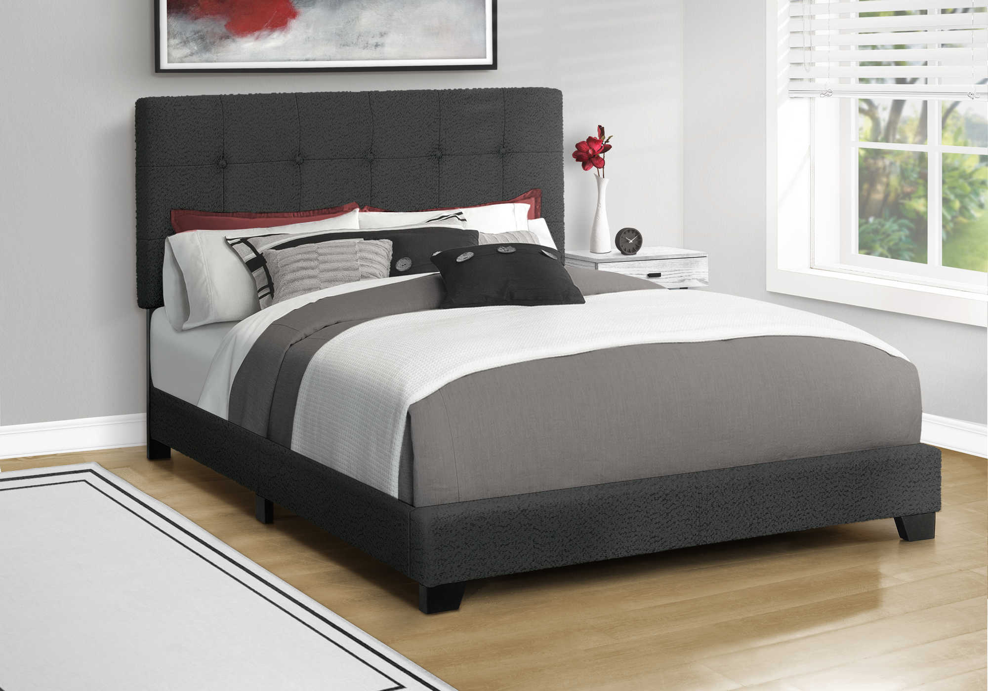 Base de lit Queen en tissu noir - Monarch (I5805Q)
