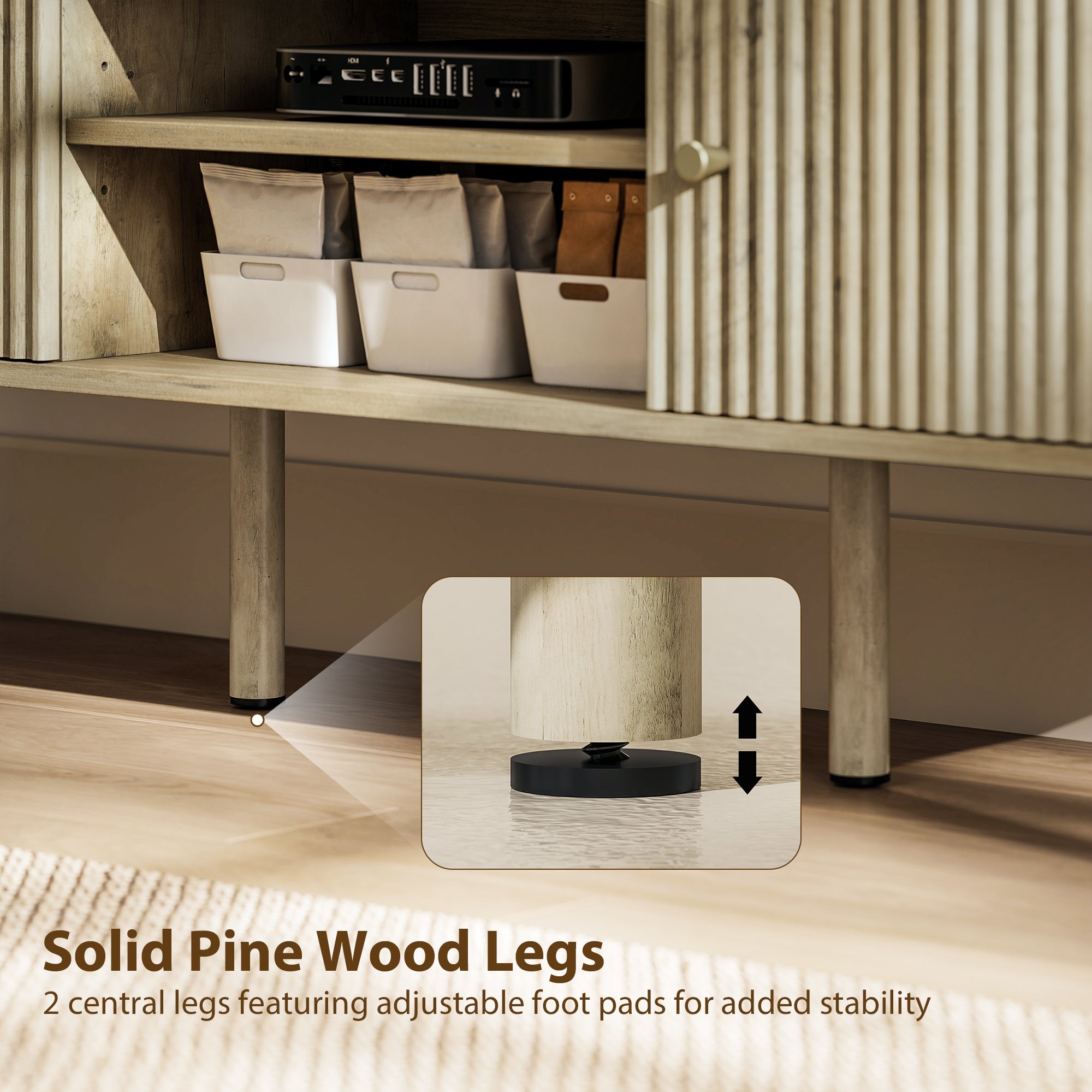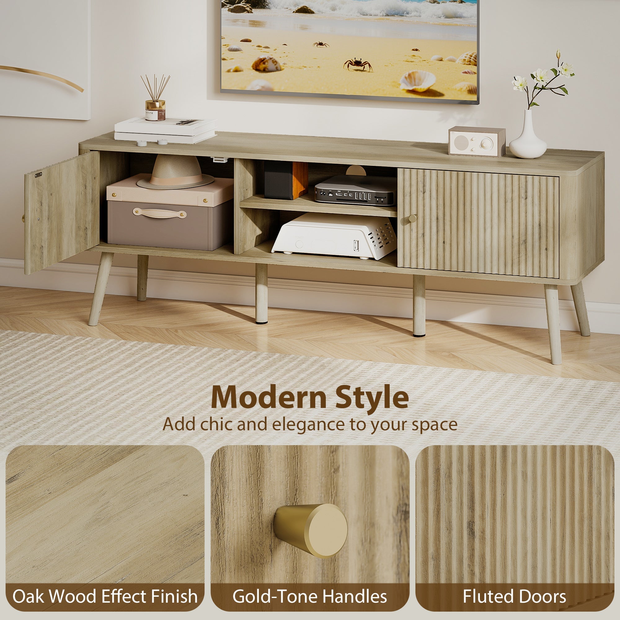 Birch TV Stand for Televisions up to 65" with Adjustable Shelves and Pine Wood Legs-Oak