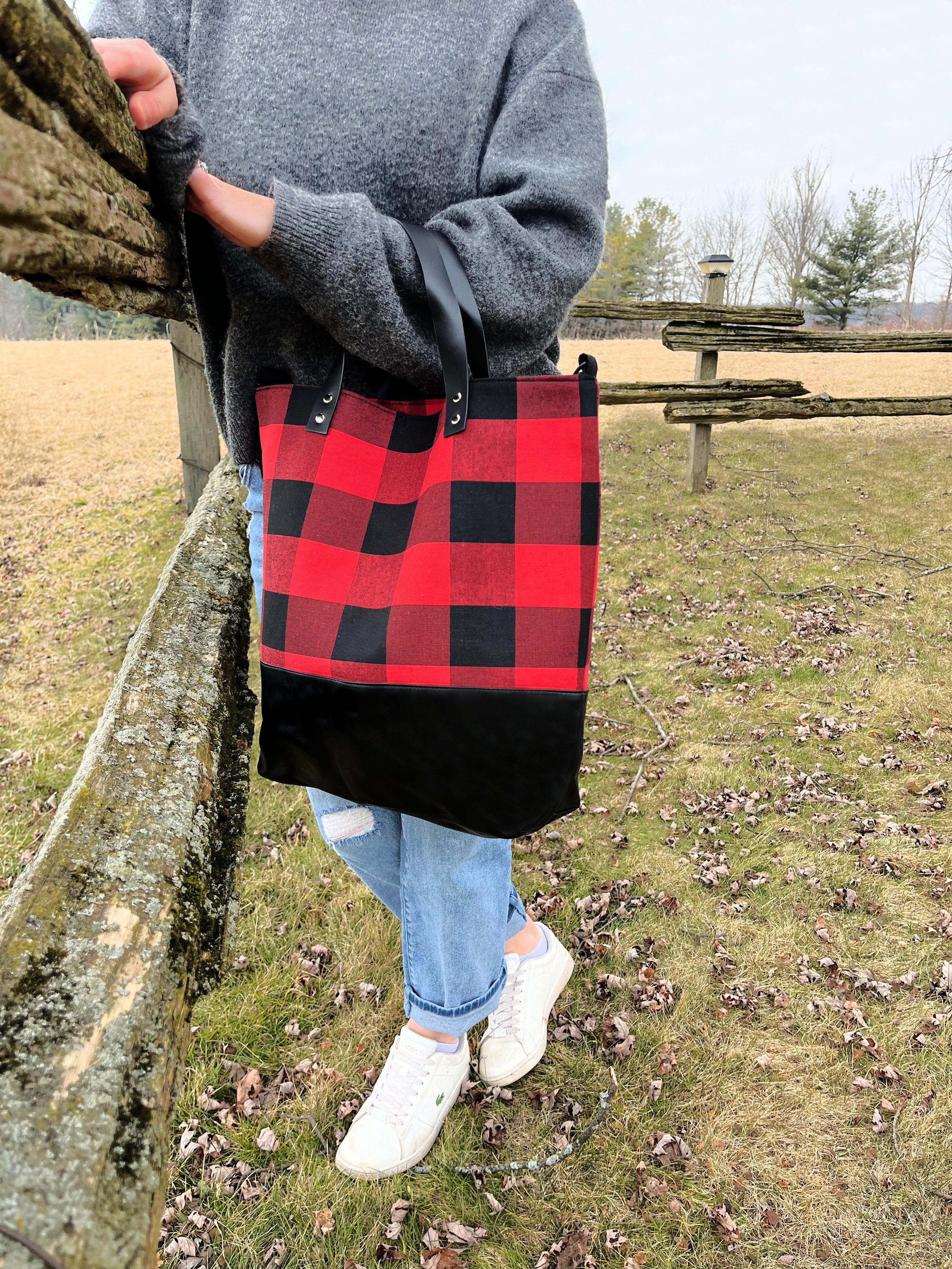 Classic buffalo plaid design with handle and adjustable detachable strap . Tote is lined with a inside pocket and a... Read more