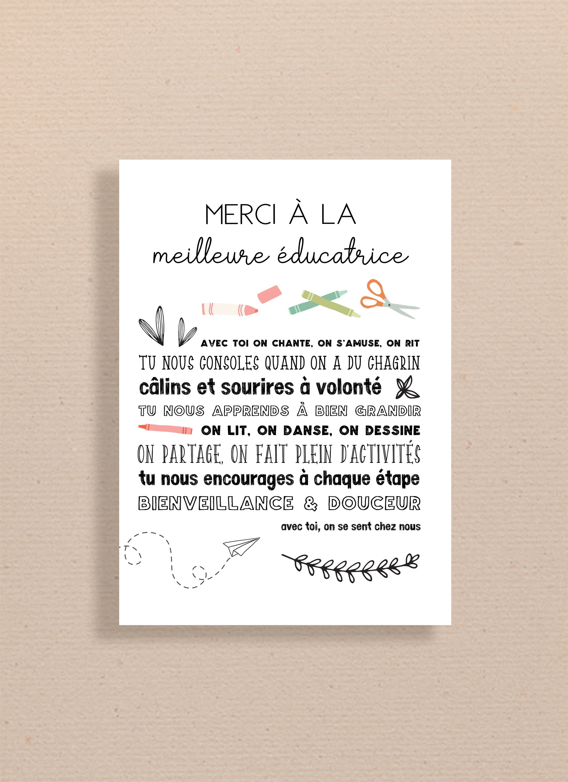 Carte de remerciement éducatrice