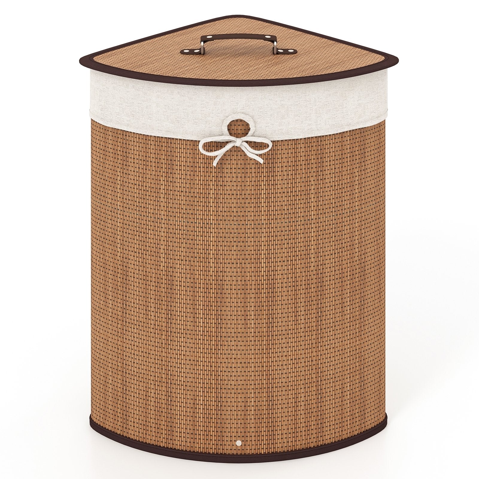 Corner Bamboo Hamper Laundry Basket with Lid and Removable Liner-Black