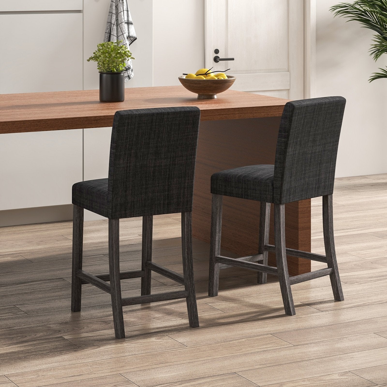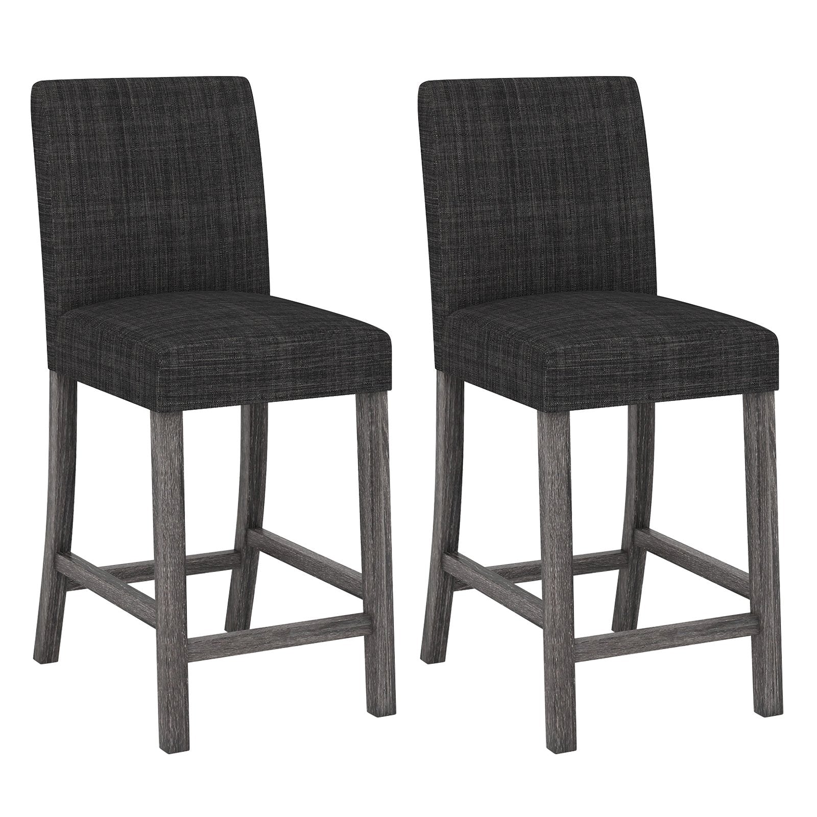 Counter Height Bar Stools Set of 2 with Back and Footrest-Beige