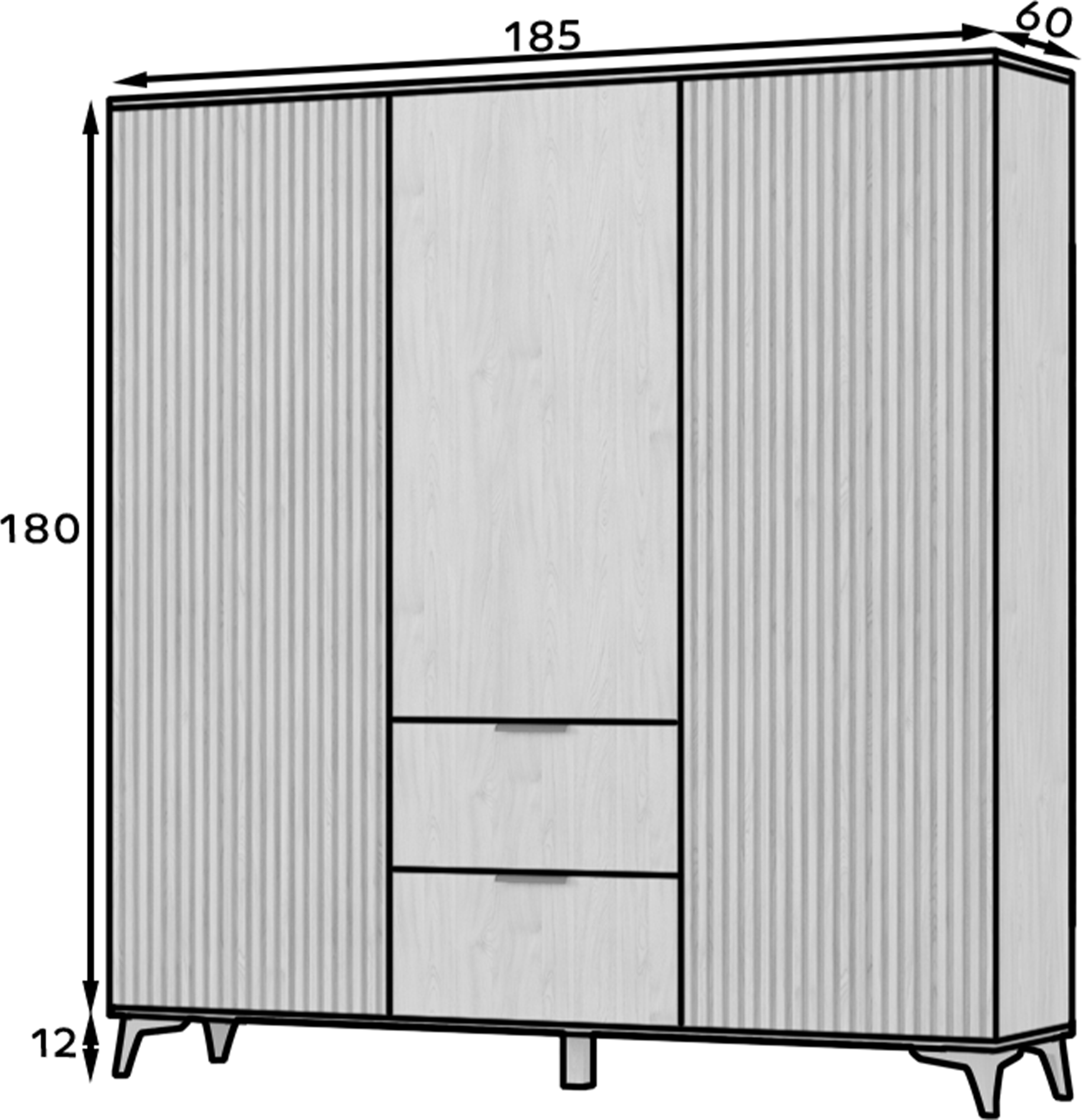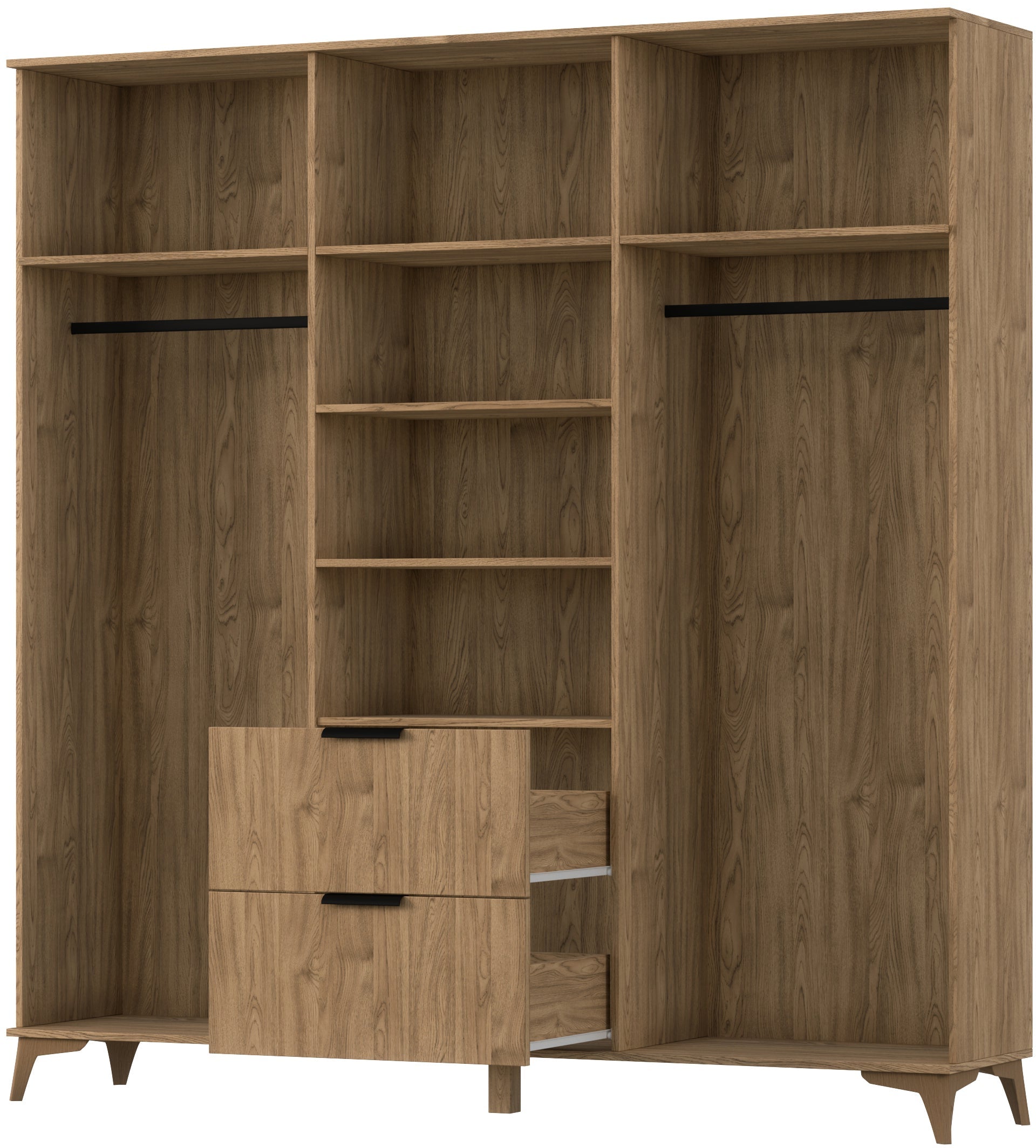 The Entsian wardrobe is an impressive storage solution that not only provides ample space but also captivates you with its appearance and functionality. This wardrobe offers sufficient storage space for a variety of items. Constructed from sturdy 16mm thick fiberboard, the Entsian wardrobe is exceptionally durable and stable. You can be assured that it will withstand daily use and maintain its excellent condition for many years.