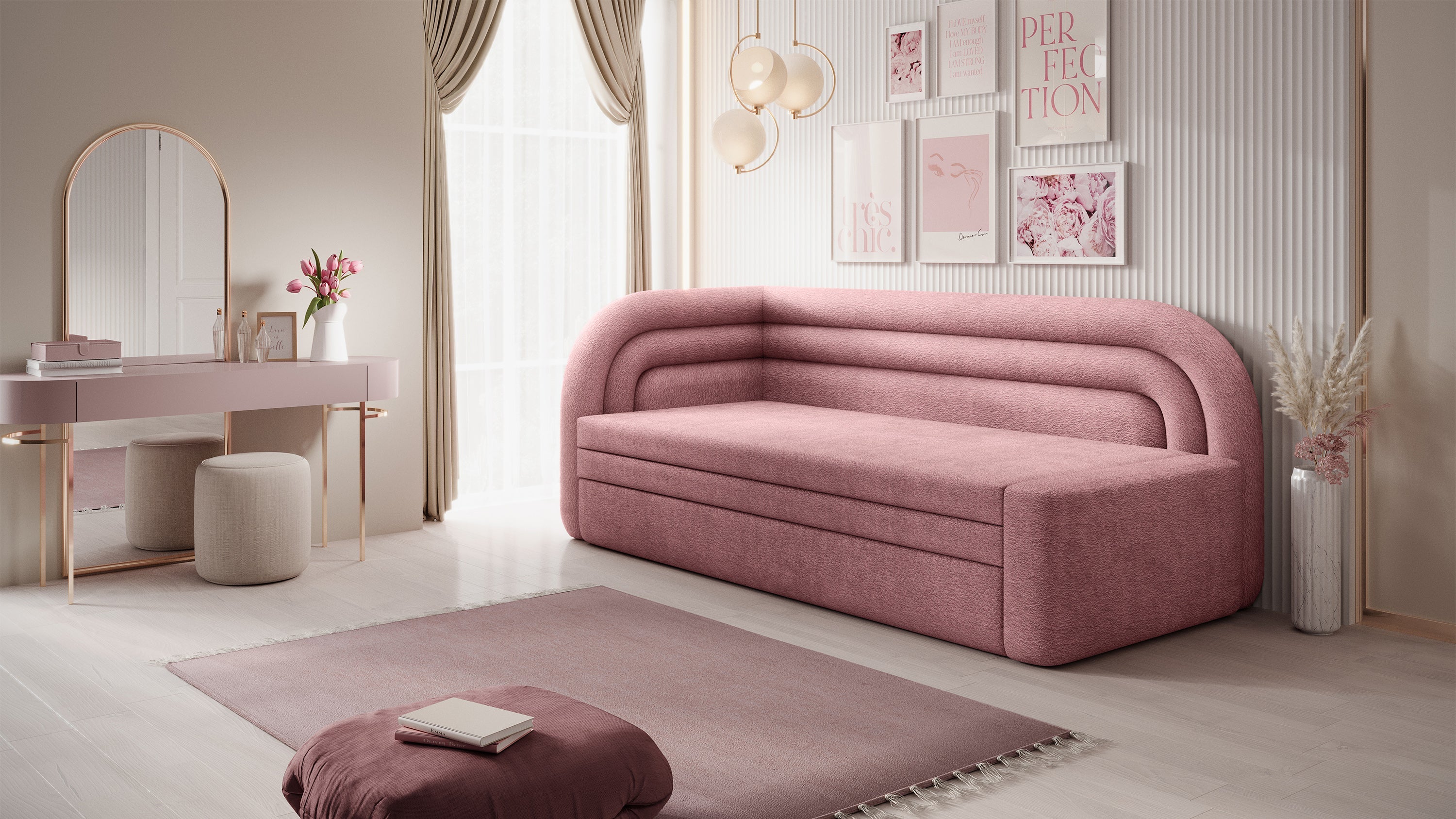 The Fabillo sofa is an elegant and functional piece of furniture that perfectly fits into modern, minimalist interiors. With the option of choosing a left or right version, Fabillo easily adapts to various room layouts. Made from high-quality fabrics, it is durable and comfortable, providing seating for up to three people. A wide range of available fabrics allows for a personalized appearance to match individual preferences. Additionally, Fabillo features a sleeping function, making it an ideal solution for guests or as an extra bed in the living room. The unfolding mechanism is simple and intuitive, and the sleeping surface is flat and comfortable, ensuring a restful sleep. The Fabillo sofa stands out with its trendy rounded edges, giving it an elegant and modern look. The soft lines and curved shapes make it not only functional but also extremely aesthetic. Fabillo is suitable for various home spaces, such as the guest room, teenager's room, or living room, making it a versatile solution for many uses. Available in both left-facing and right-facing configurations. This item qualifies for FREE DELIVERY.