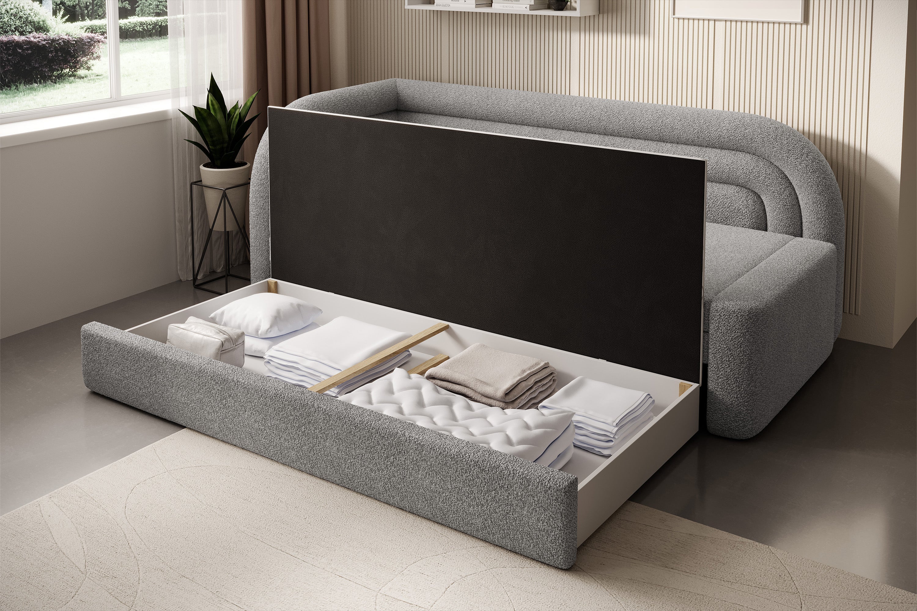 The Fabillo sofa is an elegant and functional piece of furniture that perfectly fits into modern, minimalist interiors. With the option of choosing a left or right version, Fabillo easily adapts to various room layouts. Made from high-quality fabrics, it is durable and comfortable, providing seating for up to three people. A wide range of available fabrics allows for a personalized appearance to match individual preferences. Additionally, Fabillo features a sleeping function, making it an ideal solution for guests or as an extra bed in the living room. The unfolding mechanism is simple and intuitive, and the sleeping surface is flat and comfortable, ensuring a restful sleep. The Fabillo sofa stands out with its trendy rounded edges, giving it an elegant and modern look. The soft lines and curved shapes make it not only functional but also extremely aesthetic. Fabillo is suitable for various home spaces, such as the guest room, teenager's room, or living room, making it a versatile solution for many uses. Available in both left-facing and right-facing configurations. This item qualifies for FREE DELIVERY.
