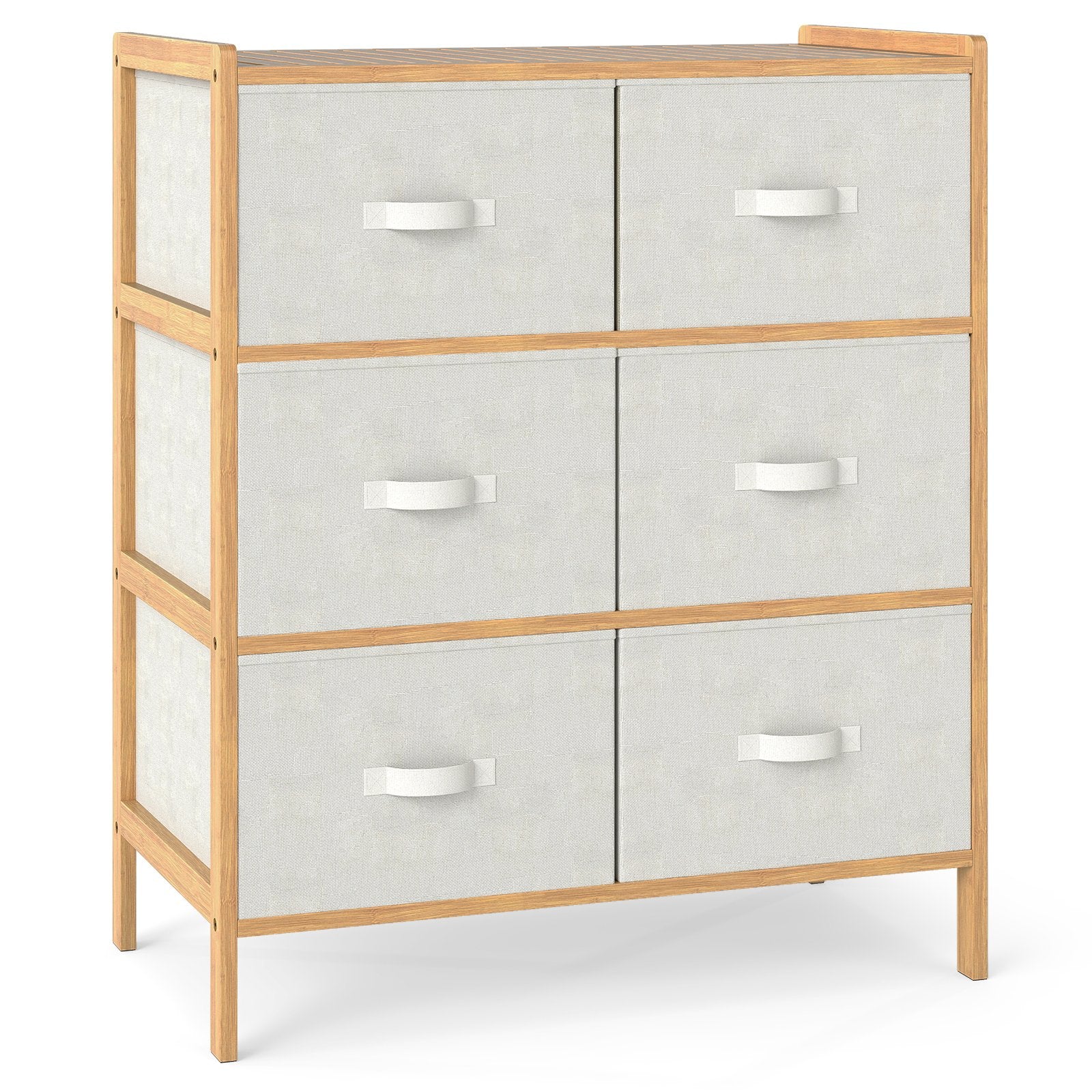 Large Storage Space: This unit features six fabric drawers providing ample space to organize clothing pants and other items. Each drawer can hold 1-2 shirts or 15-20 socks. Its breathable slatted top is perfect for displaying photos or decorative items.