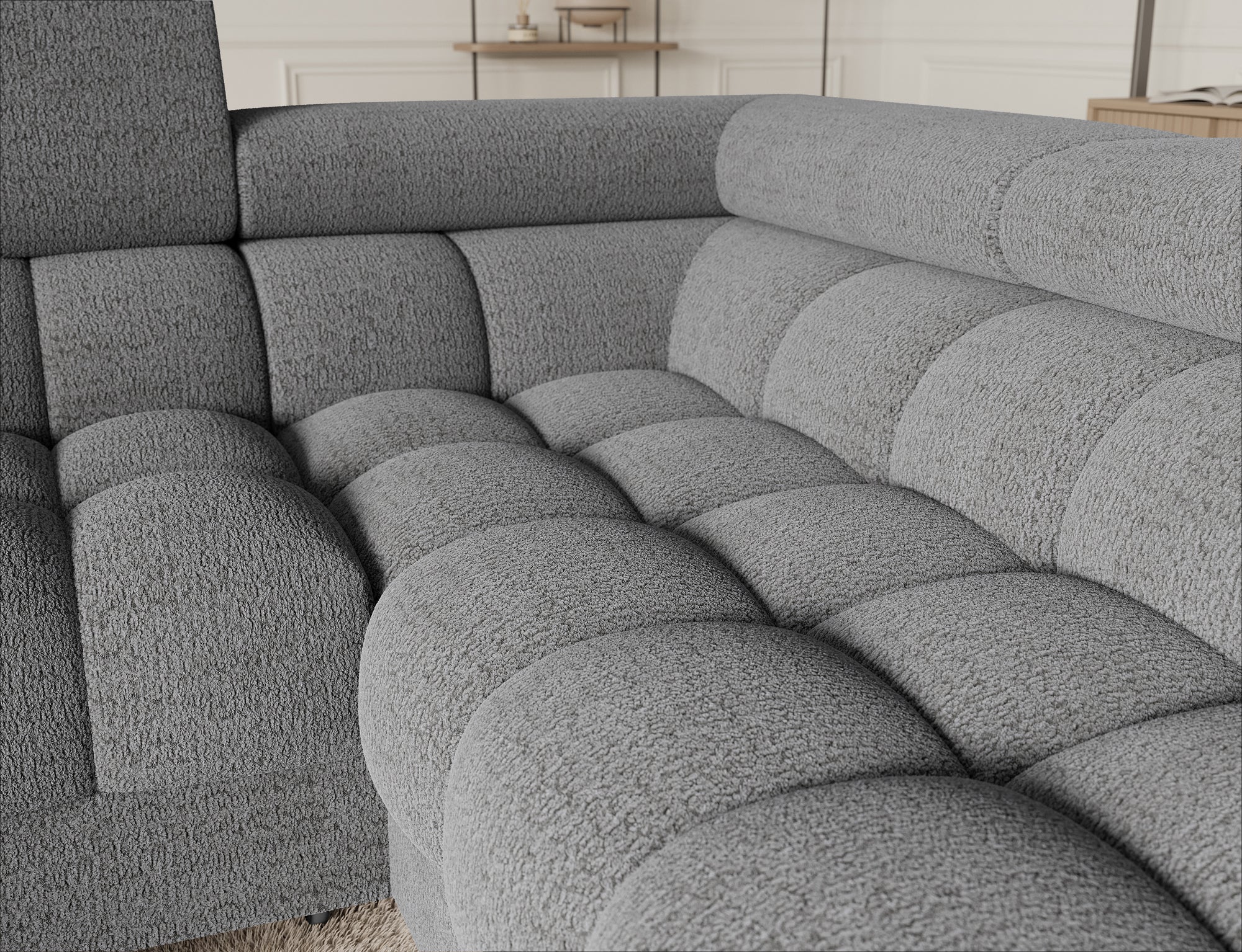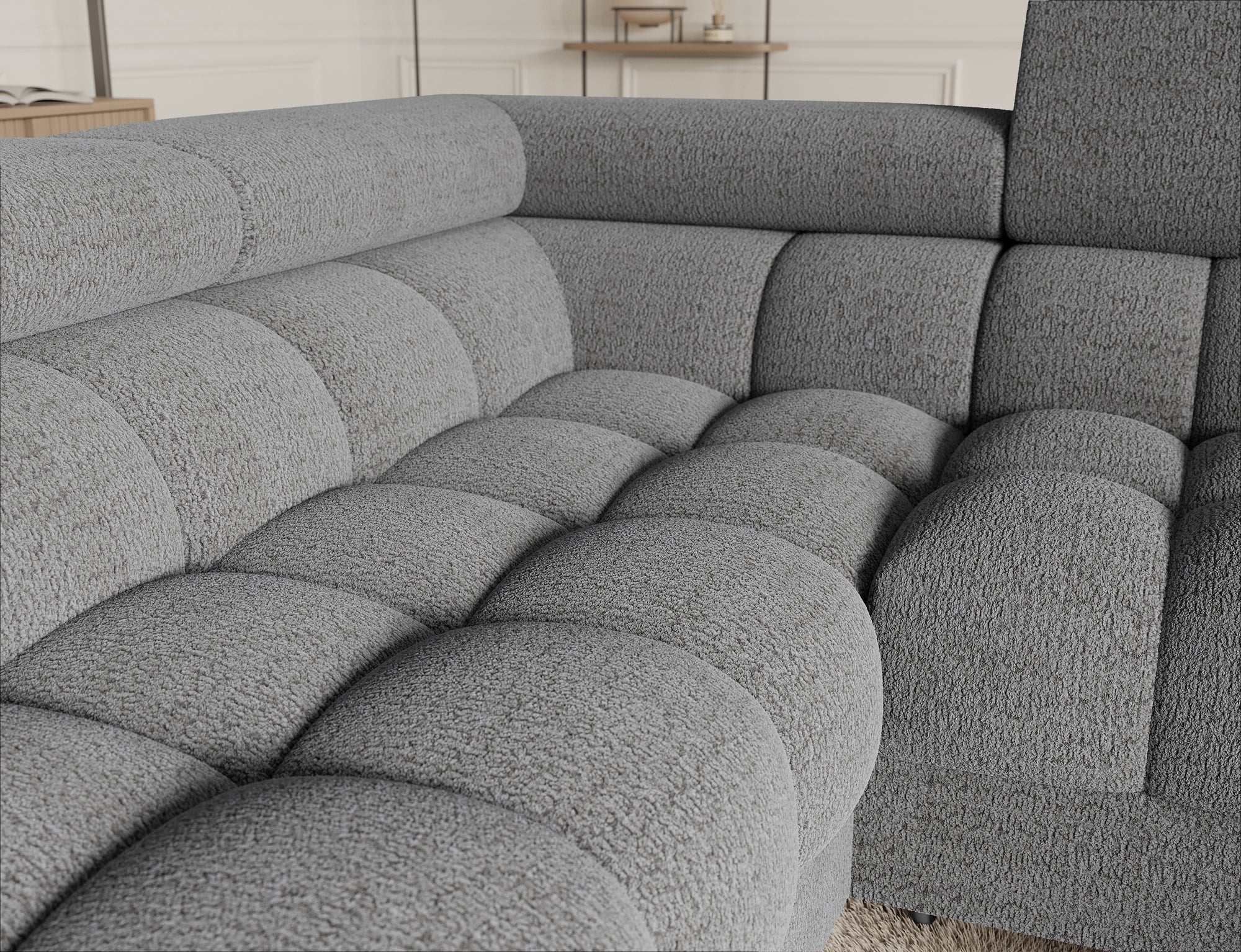 The Fectory sectional storage sleeper chaise sofa in a modern style is a perfect combination of functionality and aesthetics, equipped with type B wave springs and a double layer of foam – T3030 and profiled HR3030 – providing high seating and sleeping comfort, it features a practical sleeping function and a spacious bedding container, perfect for everyday use, the upholstered back allows free placement anywhere in the living room, and elegant black powder-coated metal legs complete the look, adding lightness and a contemporary touch, the Fectory sectional is a stylish and functional choice for those looking for a large, comfortable piece of furniture with added features. Available in both left-facing and right-facing configurations. This item qualifies for FREE DELIVERY.