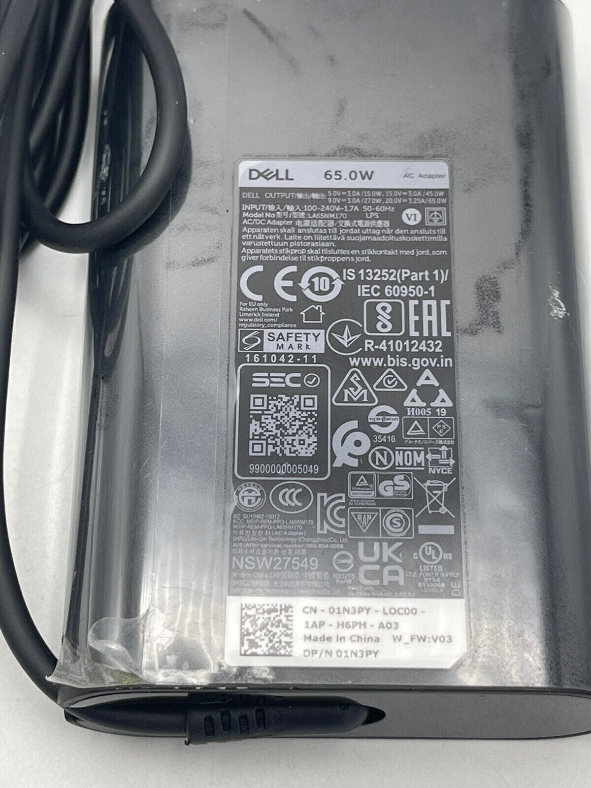 Genuine Dell 65W TypeC USBC Power Adapter Charger 2YK0F LA65NM170