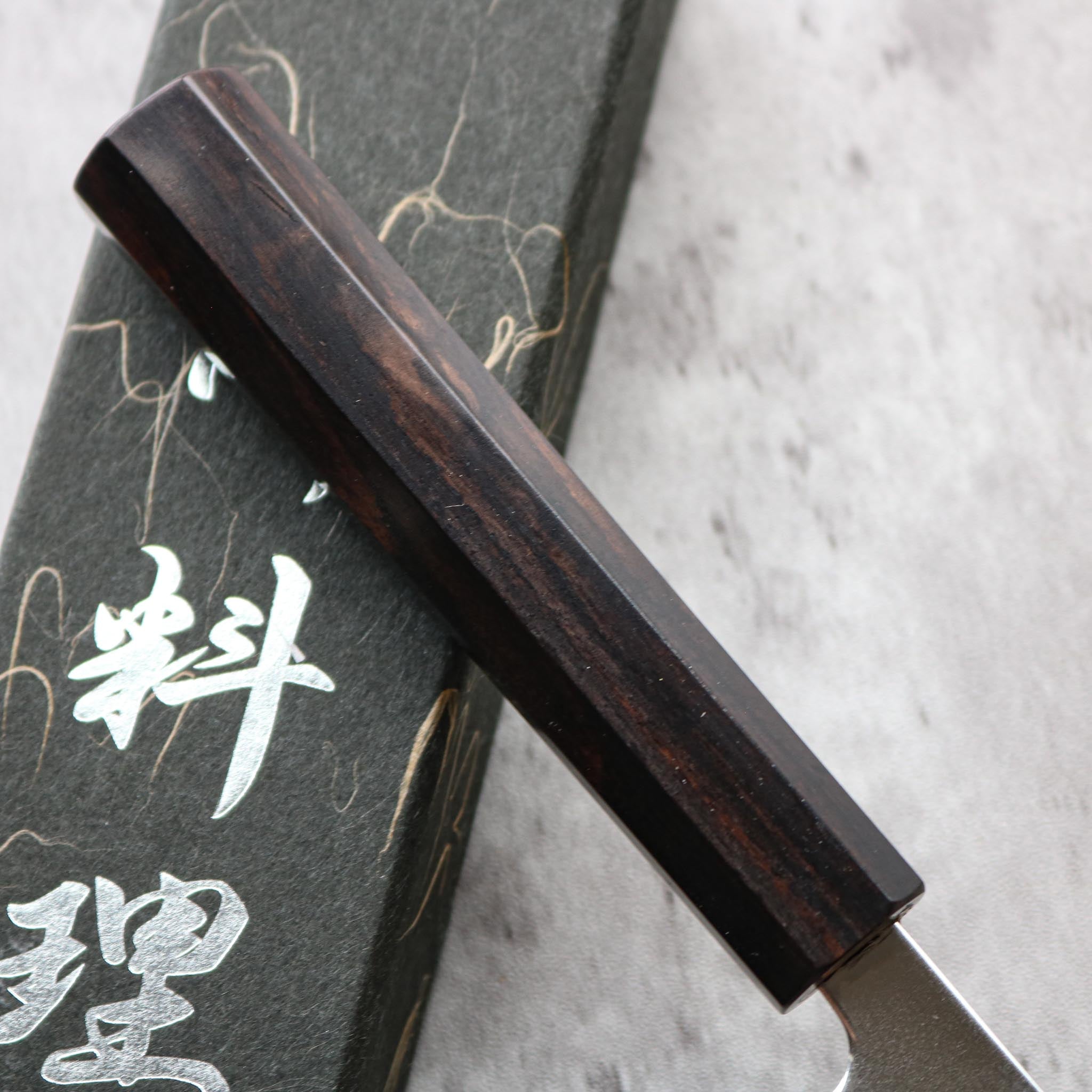 Blade Length 130 mm Total Length 255 mm Steel SLD Stainless clad Handle Ebony Ferrule N/A Rockwell 61-62 Height Spine... Read more
