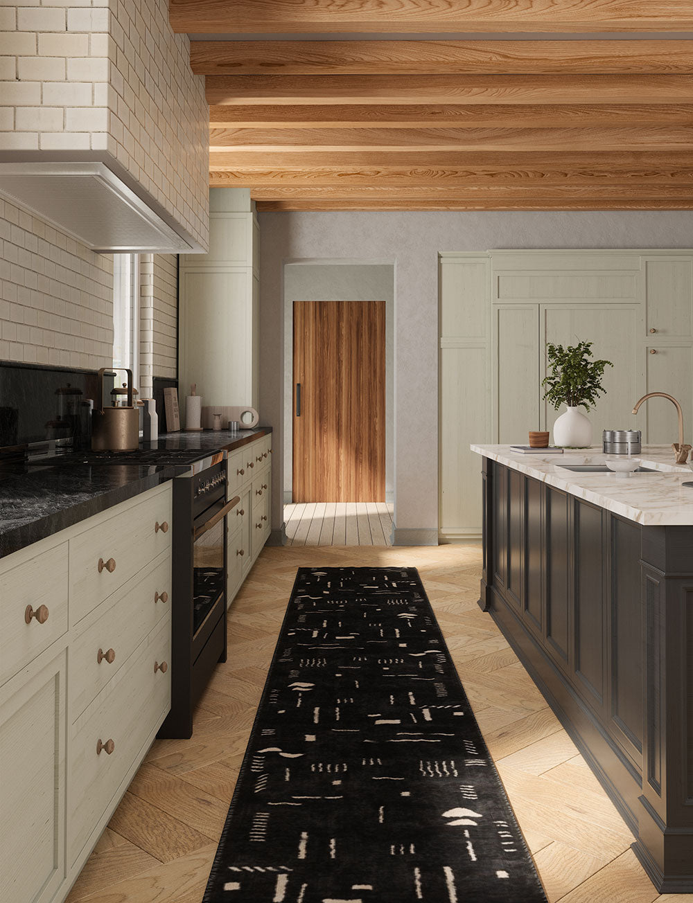 Jama is a beautiful centerpiece with a Modern Scandinavian design with a simple color mix of black and creamy white. It effortlessly pairs with many different rug pads, making it a versatile choice for any room. The Jama collection offers two options: machine washable rugs or premium linen rugs that are easy to clean (although not suitable for machine washing).