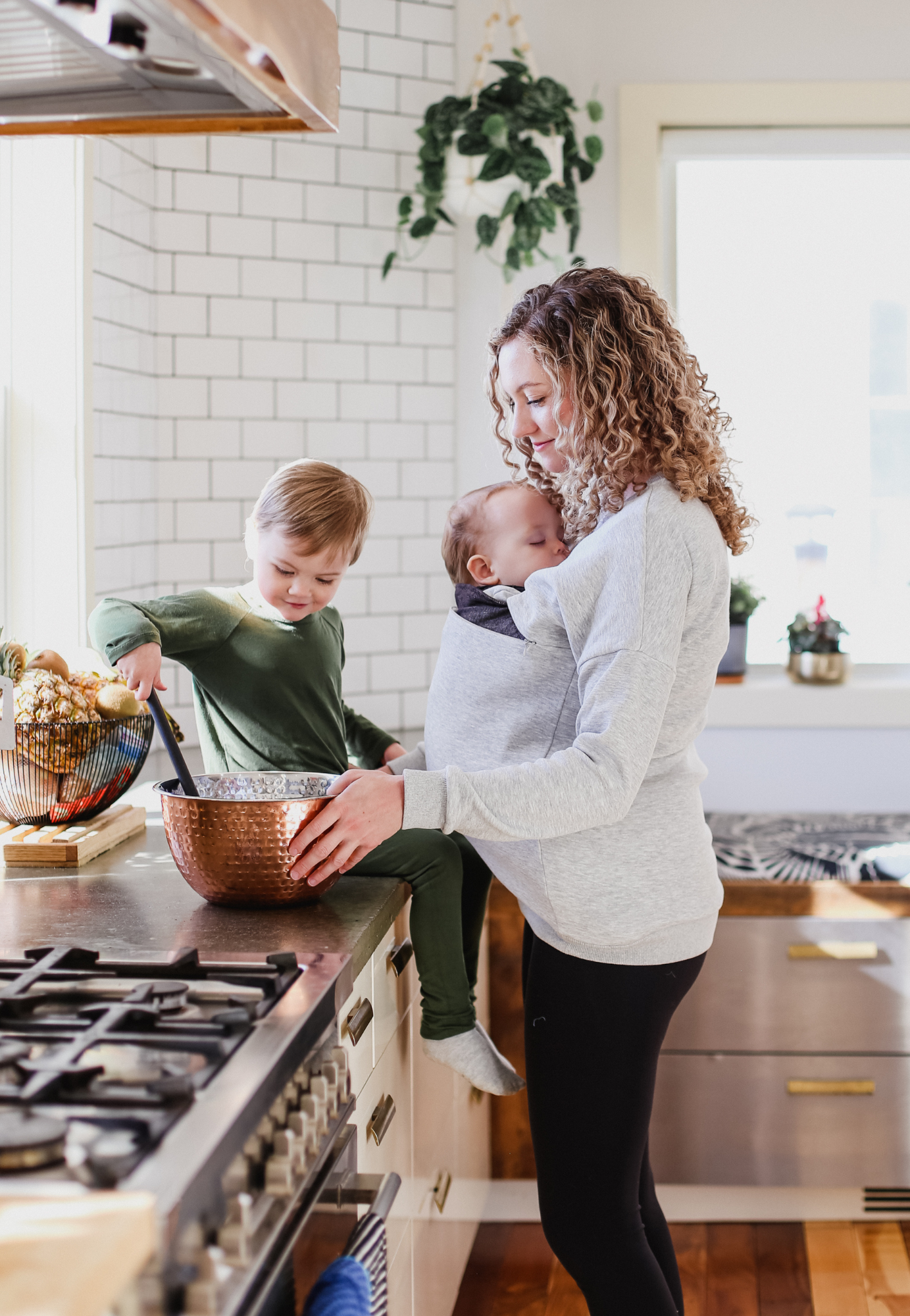 Our bestselling Jo Jo Nursing Jumper is an adorable crewneck pullover with discreet zipper nursing access — and surprising versatility. Open the zippers fully and it layers over your baby carrier (front carry or back carry), making it one of the most functional pieces in Canadian maternity and nursing wear.