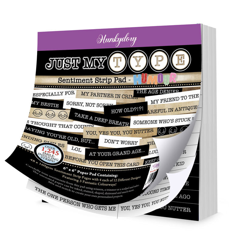 If you’re the type of crafter who loves to laugh out loud and add mirth to your makes and you’re struggling for a silly sentiment, then the Just My Type Sentiment Strip Pad - Humour is just the thing for you.