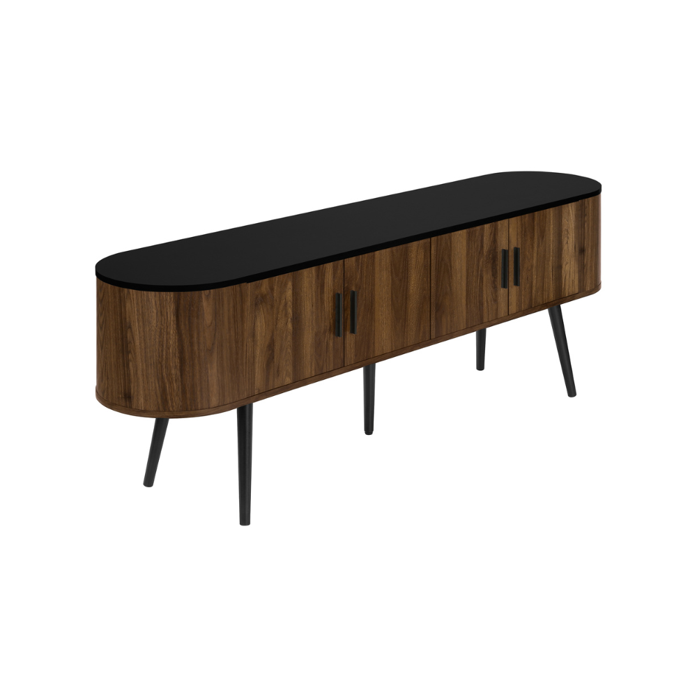 Meuble de téléviseur - Noir et brun avec 4 portes simili-bois (I2798)