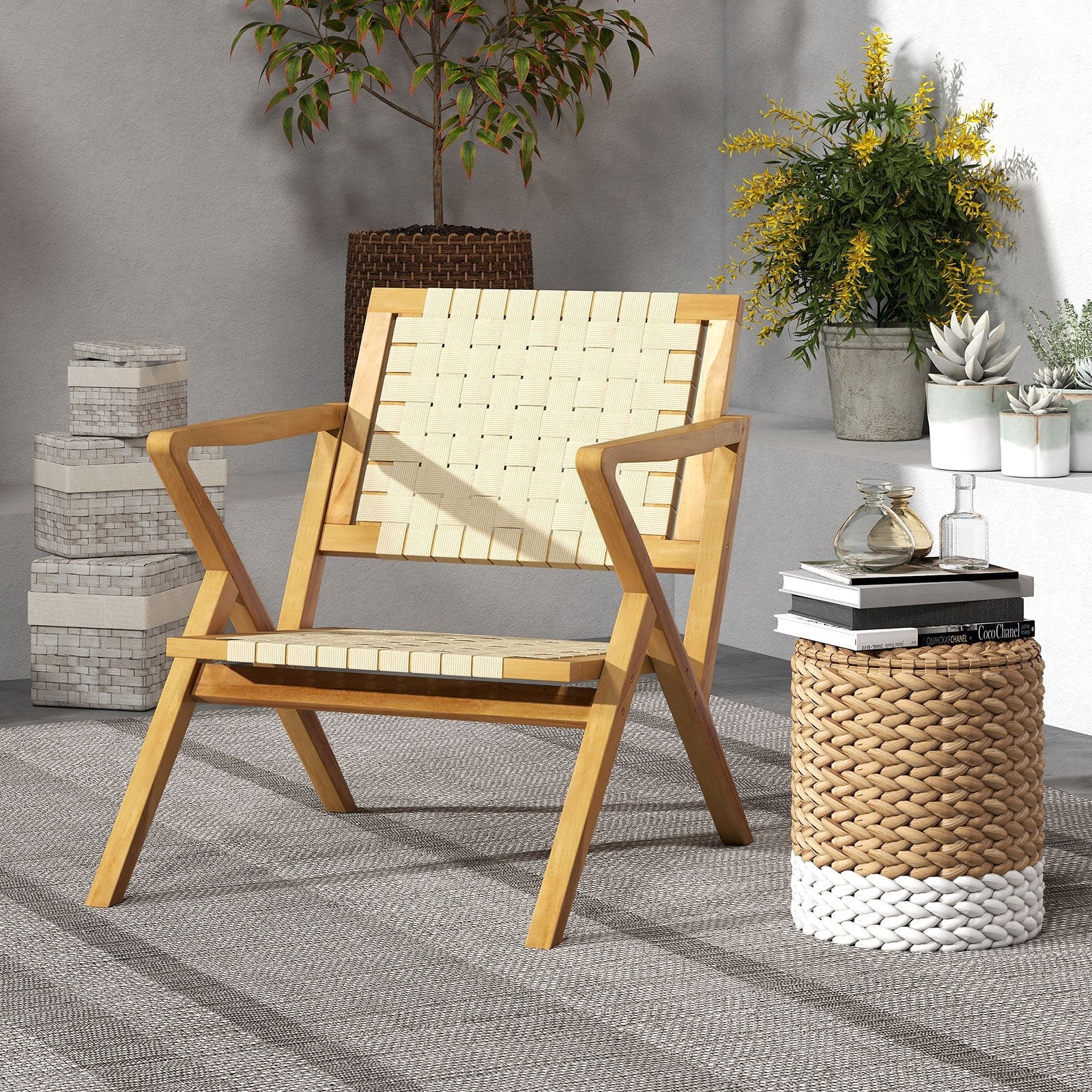 Webbing Seat & Back: The backrest and seat of this accent chair is made of sun-protective anti-tear and waterproof PP webbing ensuring long-lasting use. The breathable webbing also enhances air circulation to keep you cool during hot days.