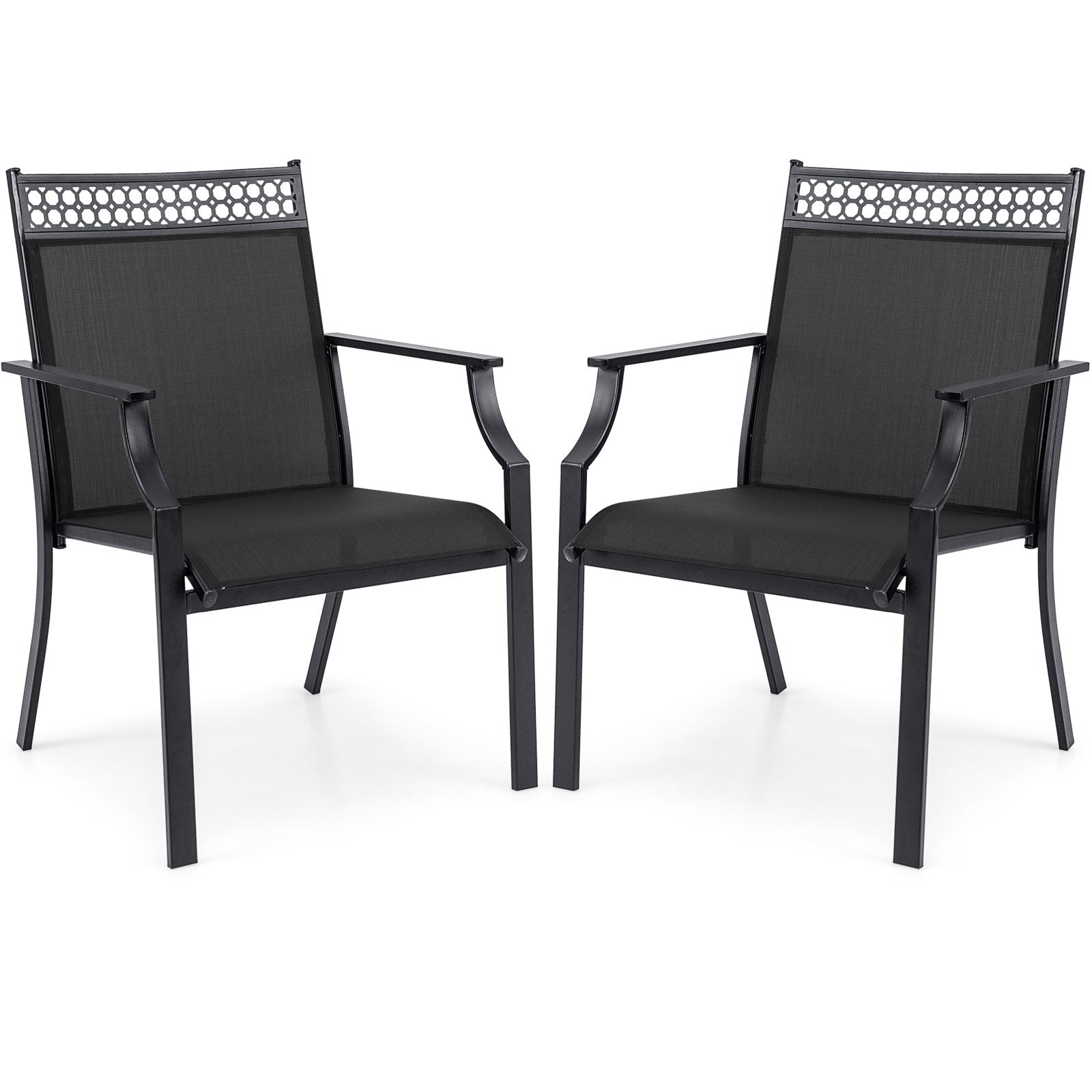 Patio Chairs Set of 2 with All Weather Breathable Fabric-Black