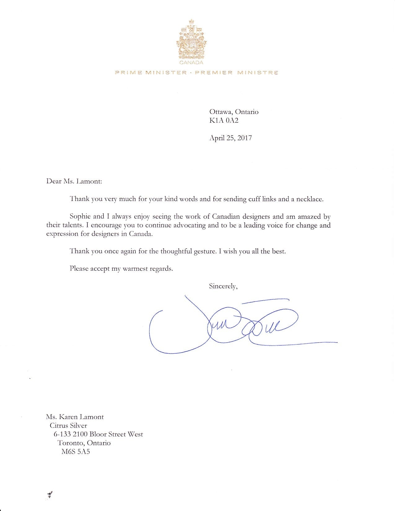 We sent 1971 penny cuff links to Prime Minster Justin Trudeau. See image below to read his letter of thanks.