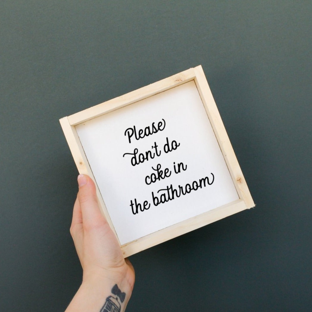 'please don't do coke in the bathroom' The Deets: Dimensions are: 7" wide by 7" long Design is silk screened... Read more