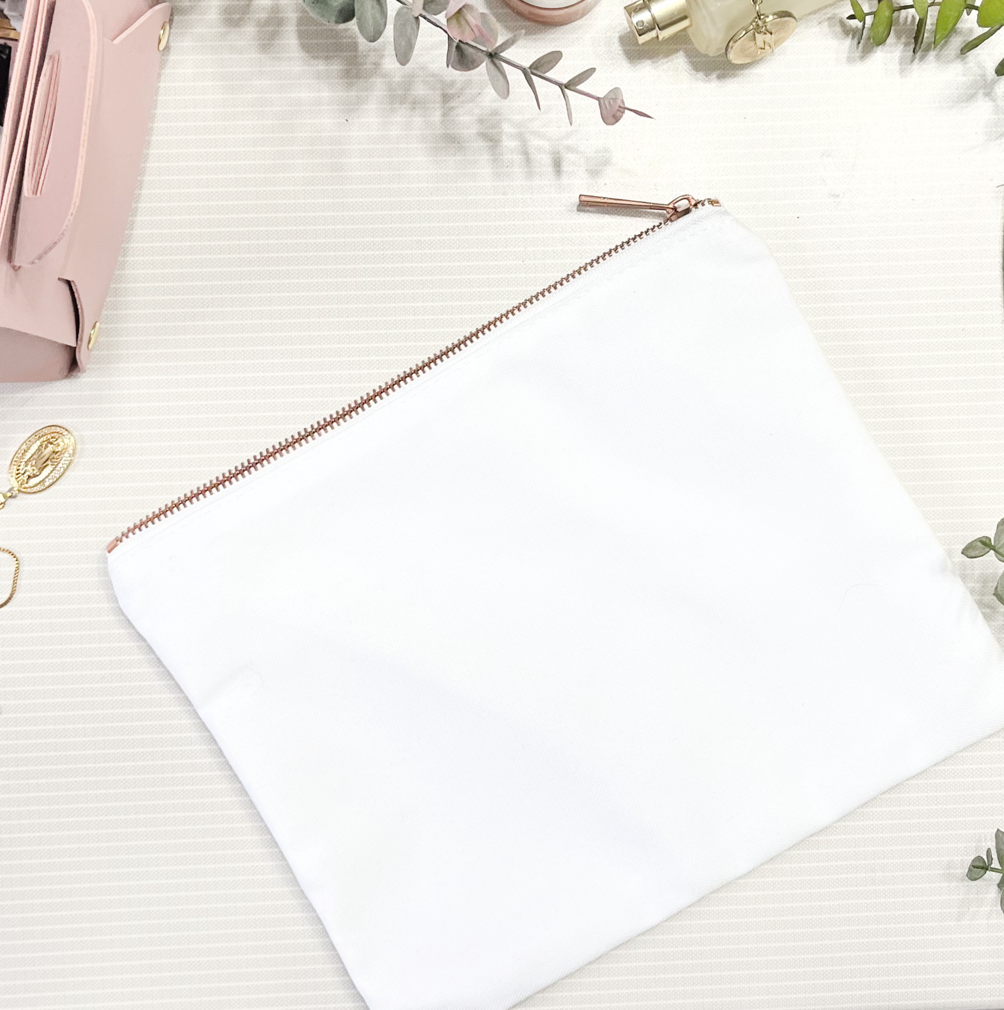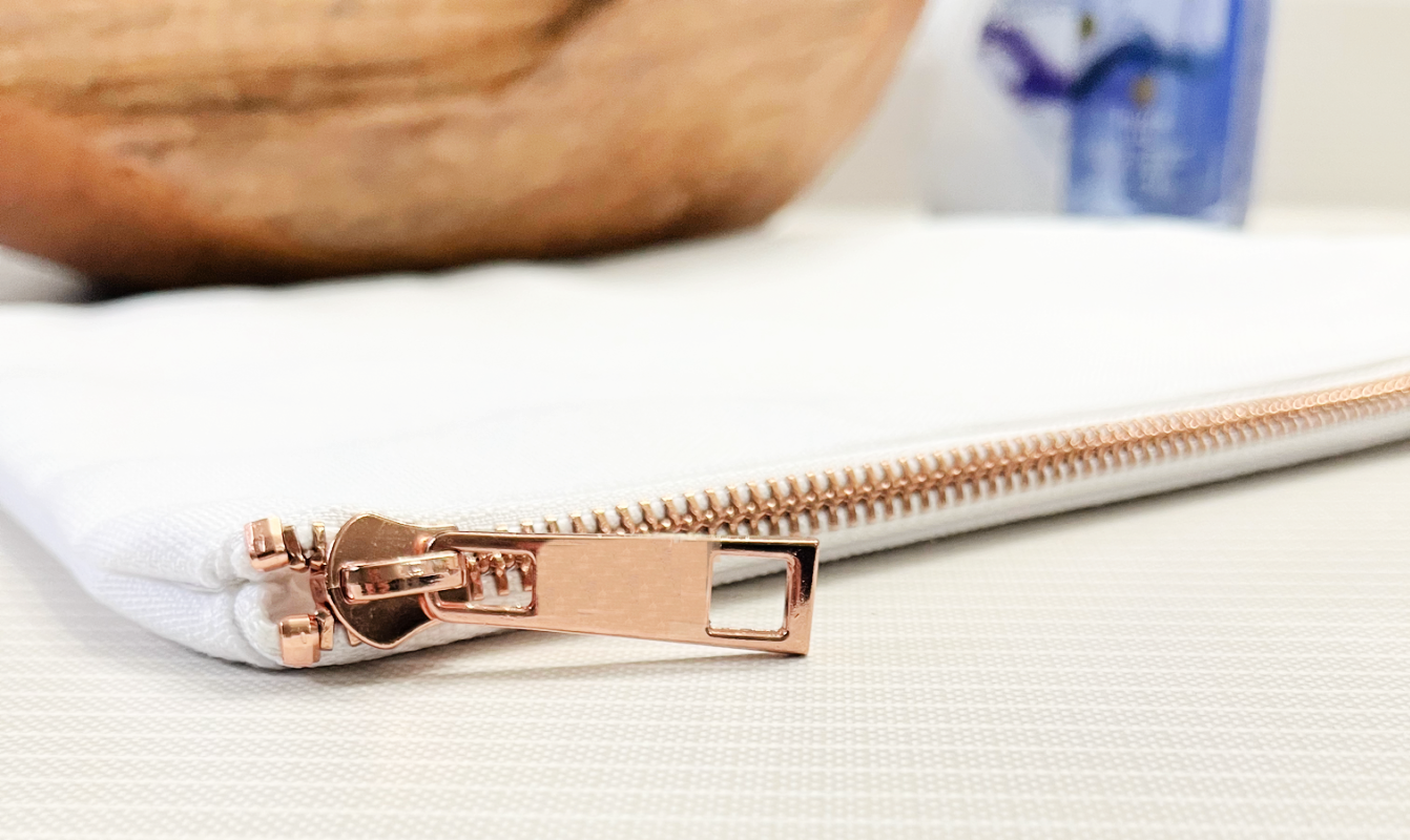 12oz Polyester case with lining and rose gold zipper. Perfect for Sublimation or HTV size approx 9.8x7.8" Read more