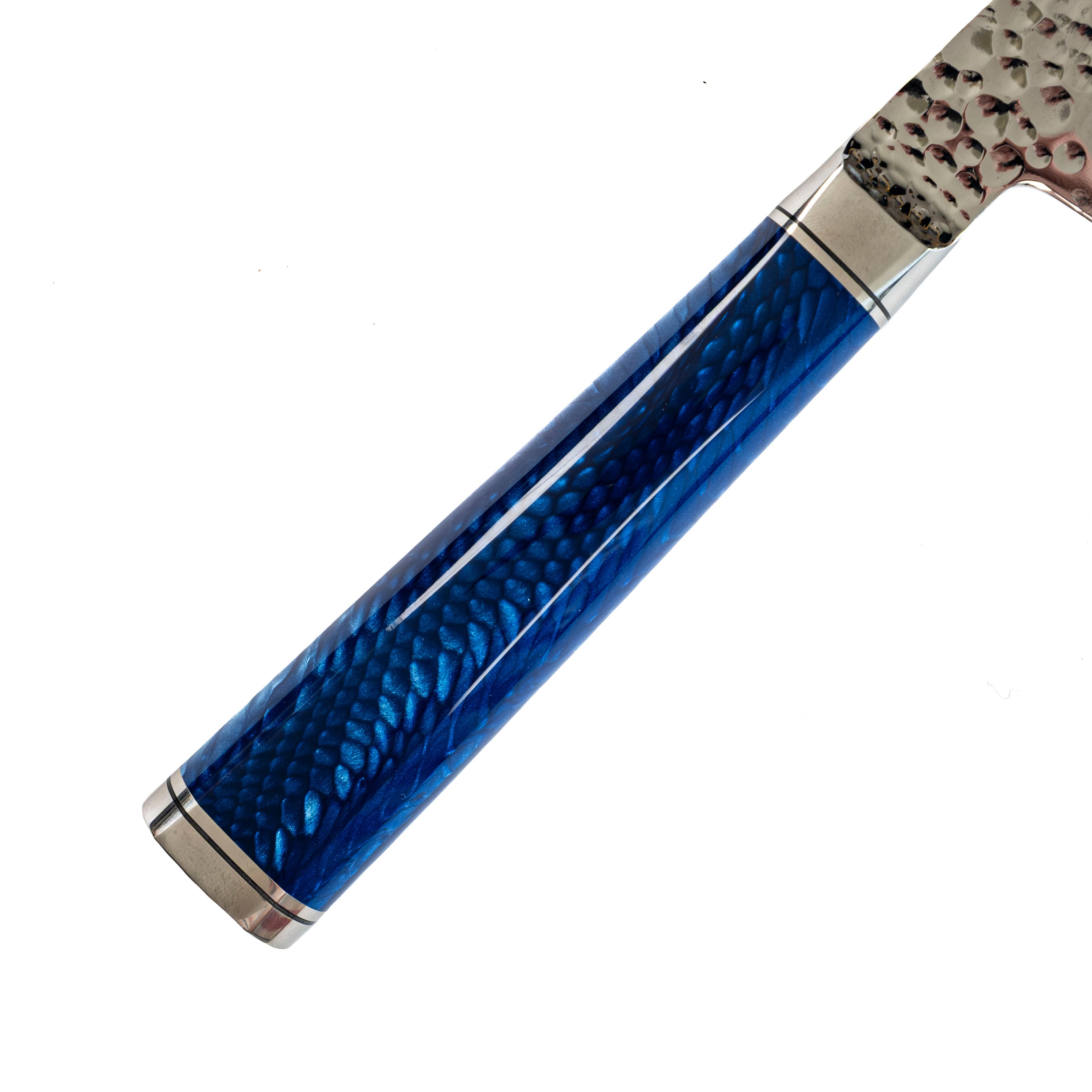 A beautiful hammered blade with a glossy finish polished by the hands of the craftsmen.