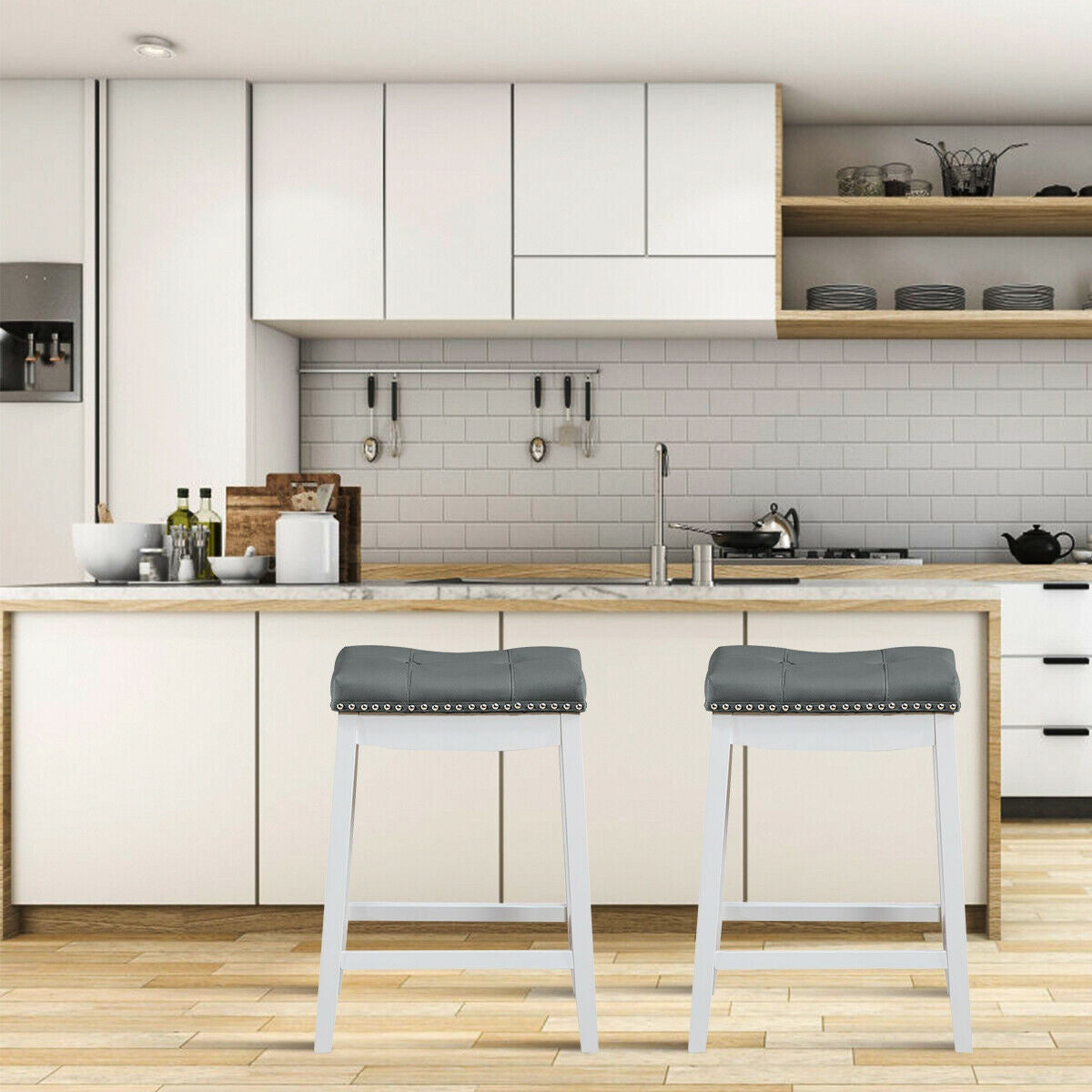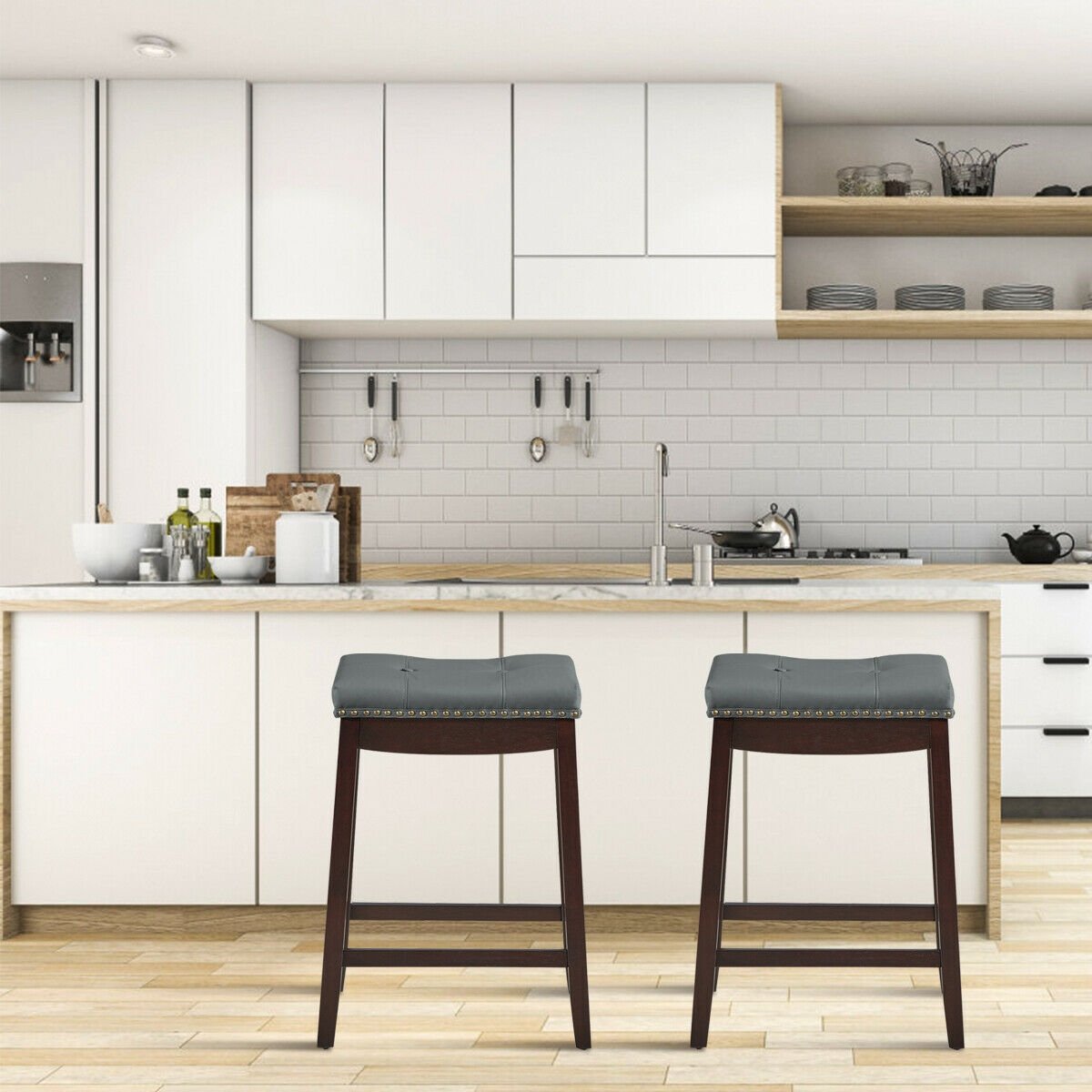 Set of 2 Nailhead Saddle Bar Stools-Brown