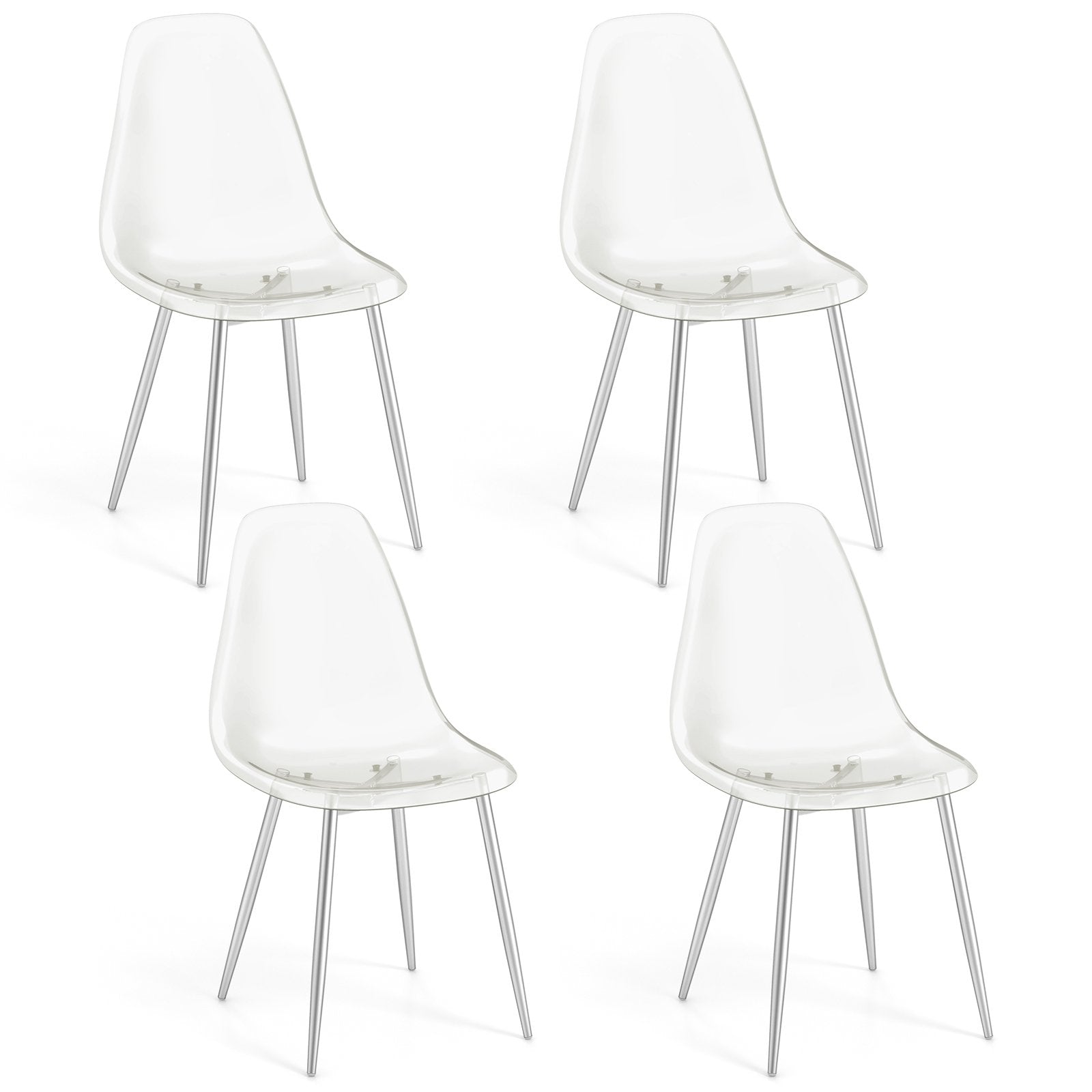 Set of 4 Dining Chairs Modern Plastic Shell Side Chair with Clear Seat and Wood Legs-Natural