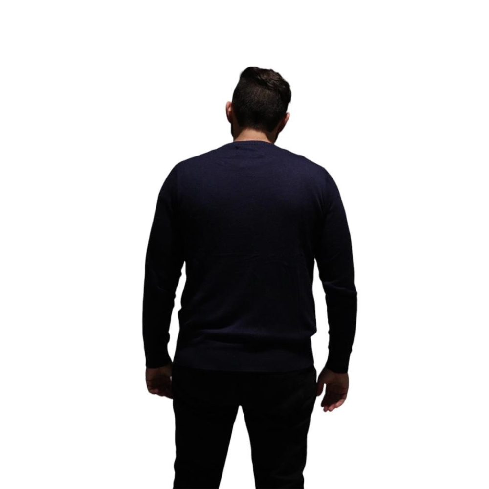 wardrobe! Crafted with care from cozy wool, this dark blue sweater captures the