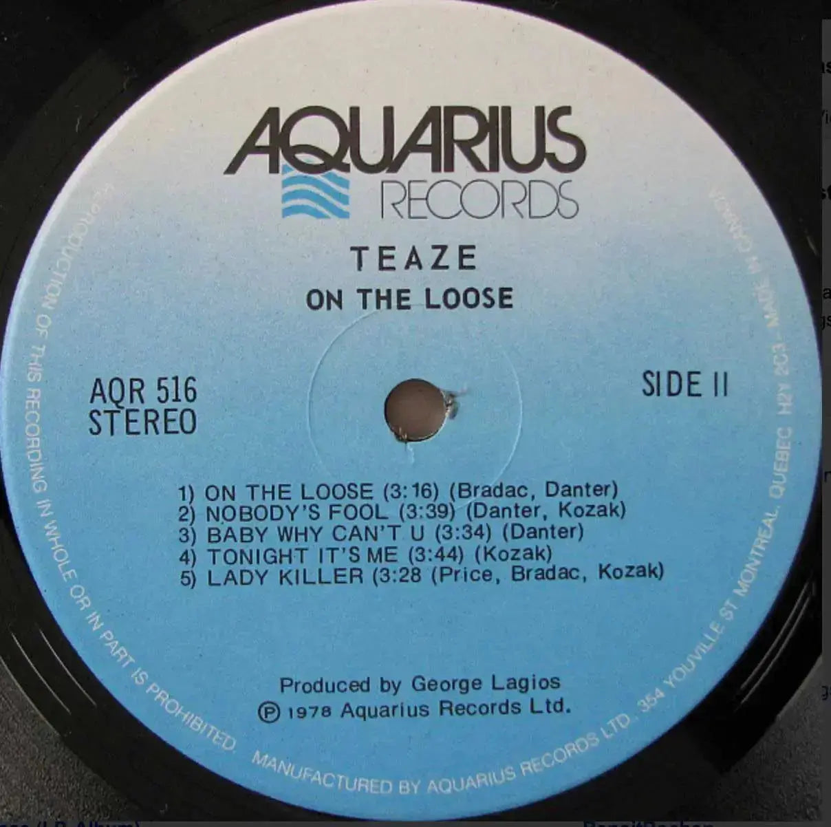 Label: Aquarius Records – AQR 516