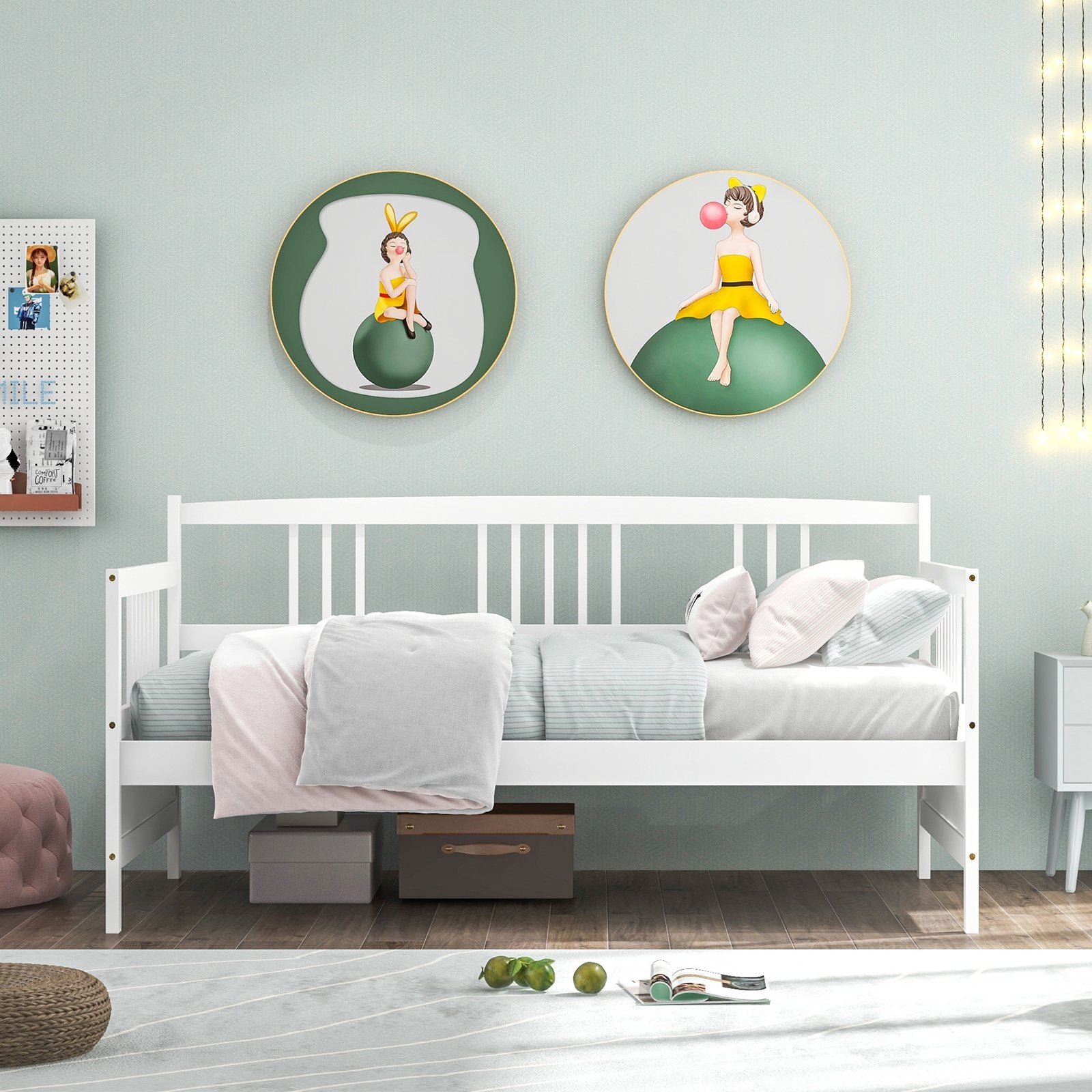 Twin Size Wooden Slats Daybed Bed with Rails-Gray