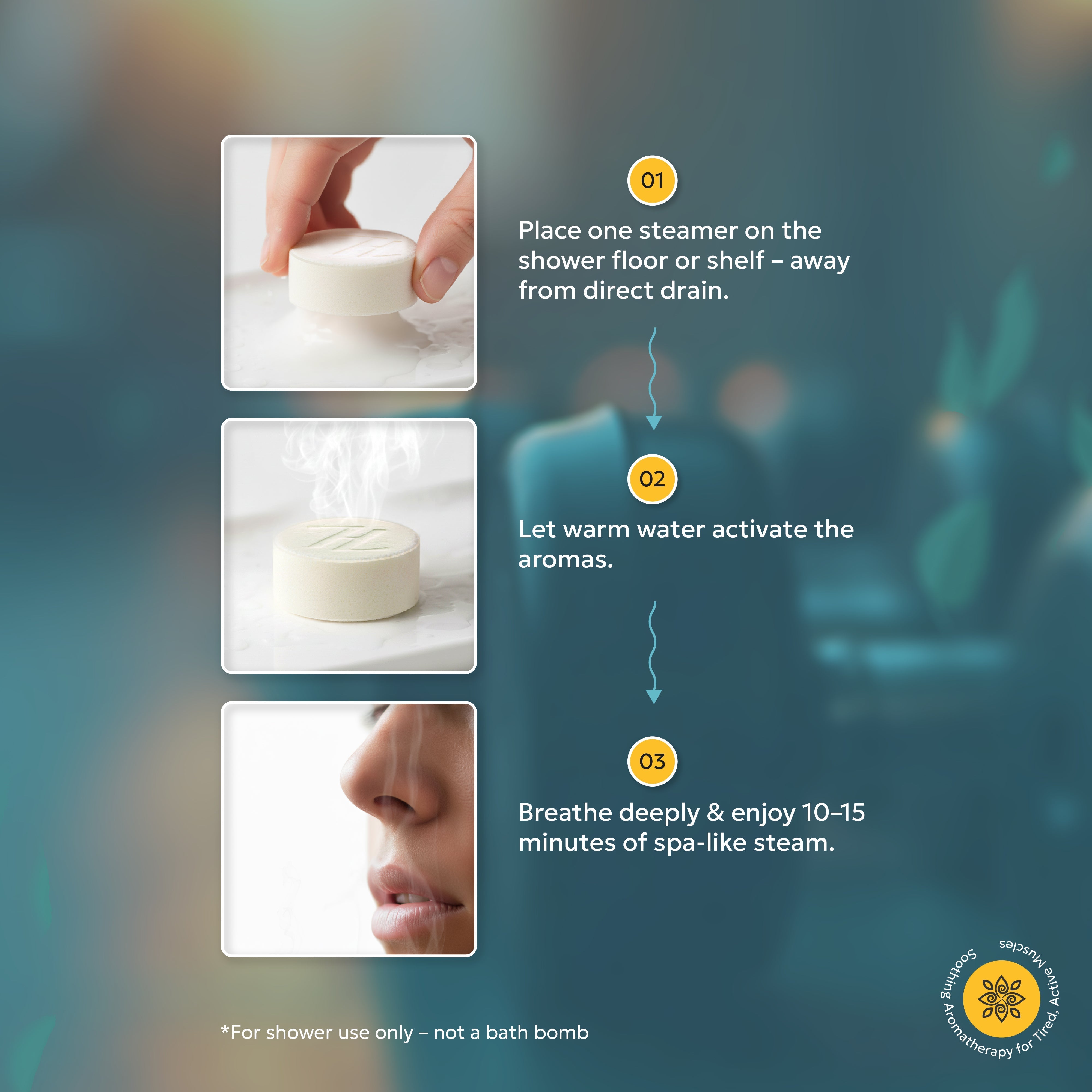 No bathtub needed. Simply place, shower, and breathe.
