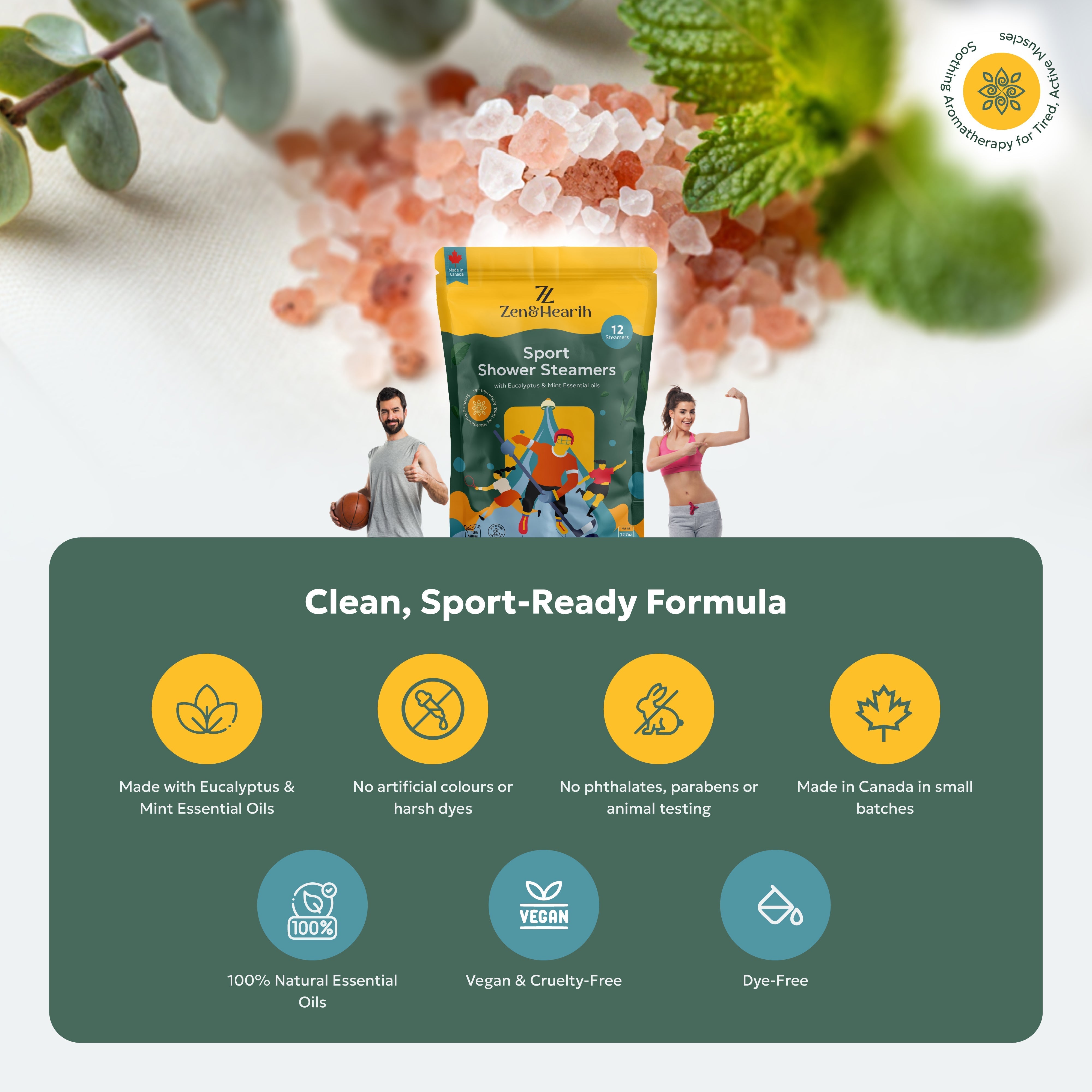 Zen & Hearth Sport Shower Steamers are crafted for athletes, gym-goers, runners, yogis, and anyone living an active lifestyle. Infused with pure eucalyptus and mint essential oils, these steamers transform your daily shower into a revitalizing recovery ritual—no bath required.